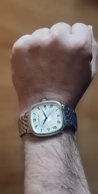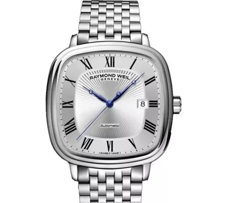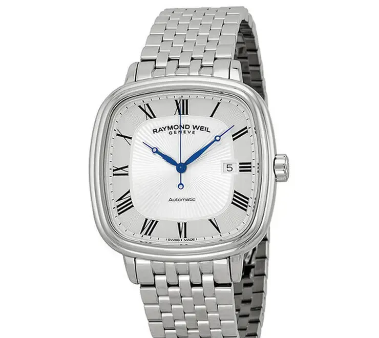 - Design premium Carcasa patrata cu colturi rotunjite finisaj lucios din otel inoxidabil si cadran argintiu elegant cu cifre romane - Mecanism automatic Functioneaza fara baterie alimentat de miscarea naturala a mainii tale - Detalii fine Maini albastre elegante geam din safir rezistent la zgarieturi si fereastra pentru data la ora 3 - Bratara din otel inoxidabil Confortabila durabila si potrivita pentru orice ocazie business casual sau evenimente speciale - Origine elvetiana Raymond Weil unul dintre cele mai apreciate branduri de ceasuri Swiss Made