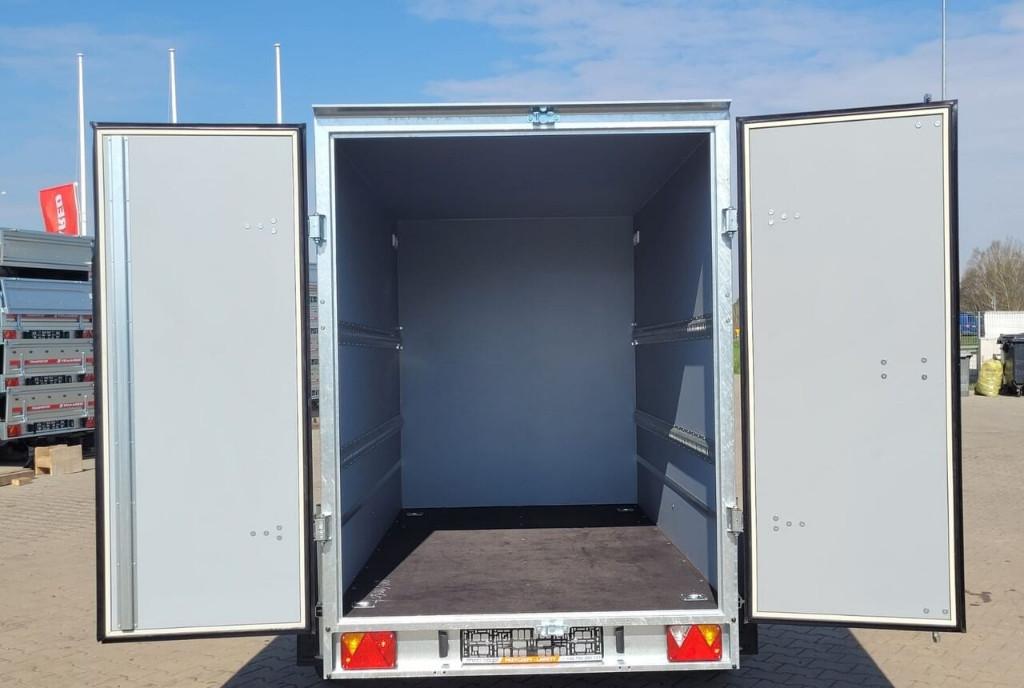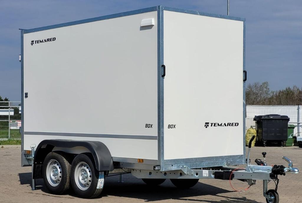 Remorca cu doua axe universala cu o capacitate de incarcare de pana la 2 tone proiectata pentru transportul diverselor tipuri de marfuri Este o alternativa excelenta la remorcile cu sasiu si prelata sau la camioneta deoarece in carcasa se asigura protectia marfii impotriva conditiilor meteorologice nefavorabile Remorca standard are o finisare alba si este echipata cu usi duble care se pot inchide cu cheie Este de asemenea dotata cu elemente practice precum ocheti de ancorare in podea pentru fixarea incarcaturii balustrade pe peretii laterali picioare de sprijin cale de blocare si o roata de sprijin Date tehnice Greutate totala 2000 kg Greutate utila 1350 kg Suprafata de incarcare mm 3050 x 1510 x 1800 Pneuri R13C Numar de axe 2 Frana Da Suprafata de incarcare mm 3050 x 1500 x 1800 Greutate utila kg 1450 Greutate totala kg 2000 Inaltimea lateralei mm 1800 Axe cu doua osii Sistem franare