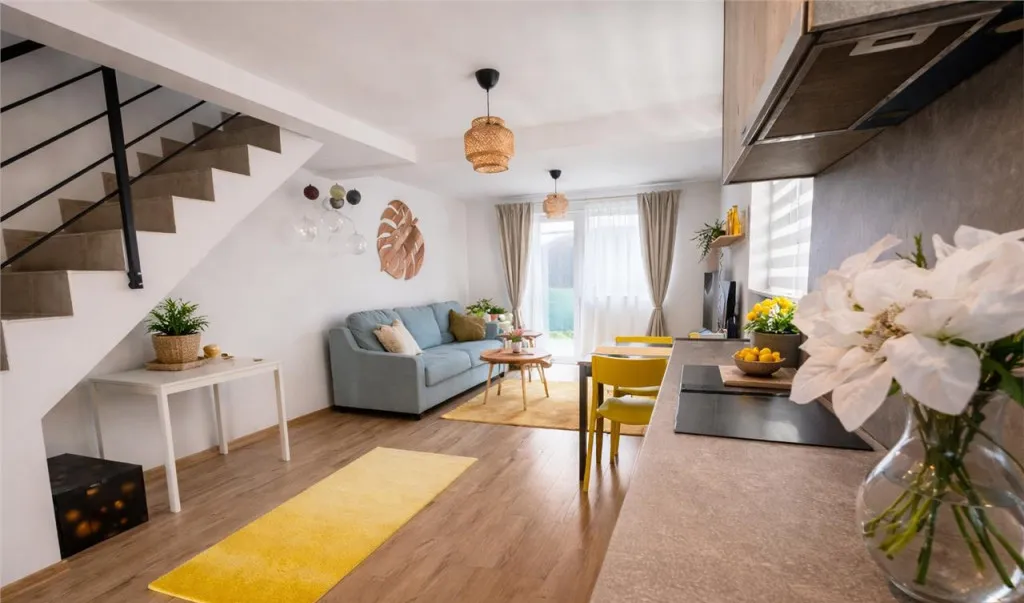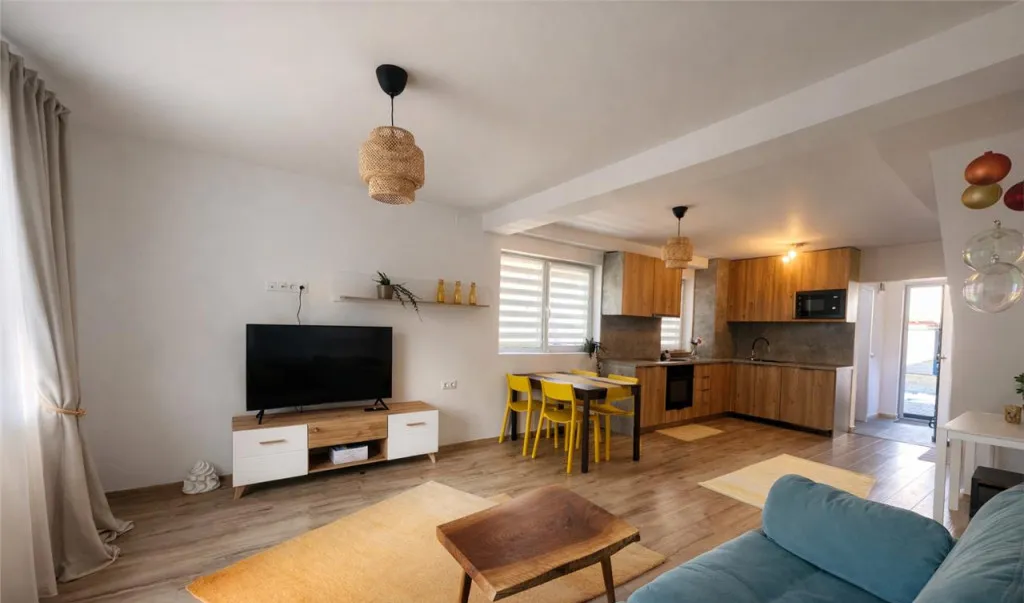 Aceast imobil este compartimentat dupa cum urmeaza: living open-space cu bucataria, 2 bai, 2 dormitoare hol de acces si scara interioara.