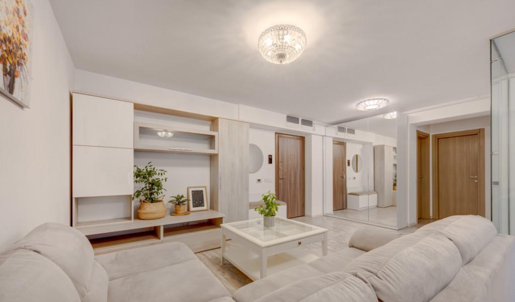 Pe strada Nerva Traian in complexul Roka Residence la etajul 8/12 este disponibil la inchiriere un apartament de 2 camere foarte spatios cu o compartimentare practica si o vedere splendida asupra orasului Apartamentul se inchiriaza impreuna cu locul de parcare subteran Locuinta este compusa dintr-o camera de zi spatioasa cu iesire spre balcon bucatarie inchisa cu perete de sticla dormitor de 17 50mp dressing si baie cu cada Este complet mobilata si utilata Confortul termic este asigurat de centrala termica Immergas si incalzire prin pardoseala De asemenea in apartament sunt montate 2 aparate de aer conditionat Este montat video-interfon iar complexul beneficiaza de monitorizare video si paza 24/24h Fiind orientat spre sud-est este plin de lumina naturala pe tot parcusul zilei si are o vedere frumoasa asupra orasului Roka Residence este un complex foarte bine construit cu spatii comune largi cu cafenele restaurante si magazine la parter cu tot ceea ce isi trebuie pentru o viata buna Blocul este construit in 2021 are 12 etaje si 3 niveluri de subsol iar fiecare scara are 2 lifturi Peretii sunt de caramida Porotherm 25 cm la exterior 20 cm intre apartamente si holuri comune iar fatada este semi-ventilata BOND termosistem Tamplaria este de aluminiu SCHUCO cu geam tripan usile interioare sunt PINUM si usa de la intrare este metalica Megadoor Zona este foarte bine deservita de mijloacele de transport in comun statia de metrou Timpuri Noi este la 4 minute de mers pe jos iar statiile de tramvai si autobuz sunt chiar in fata blocului Pentru cumparaturi in apropiere este Mallul Vitan primul mall din Bucuresti La 15 minute de mers pe jos este Parcul Tineretului Pentru a primi alte detalii cu privire la acest apartament deosebit si pentru a programa o vizionare va rog sa ma contactati Proprietatea este reprezentata exclusiv de TUDOR City Comisionul este 0 pentru chirias Id intern AT12390