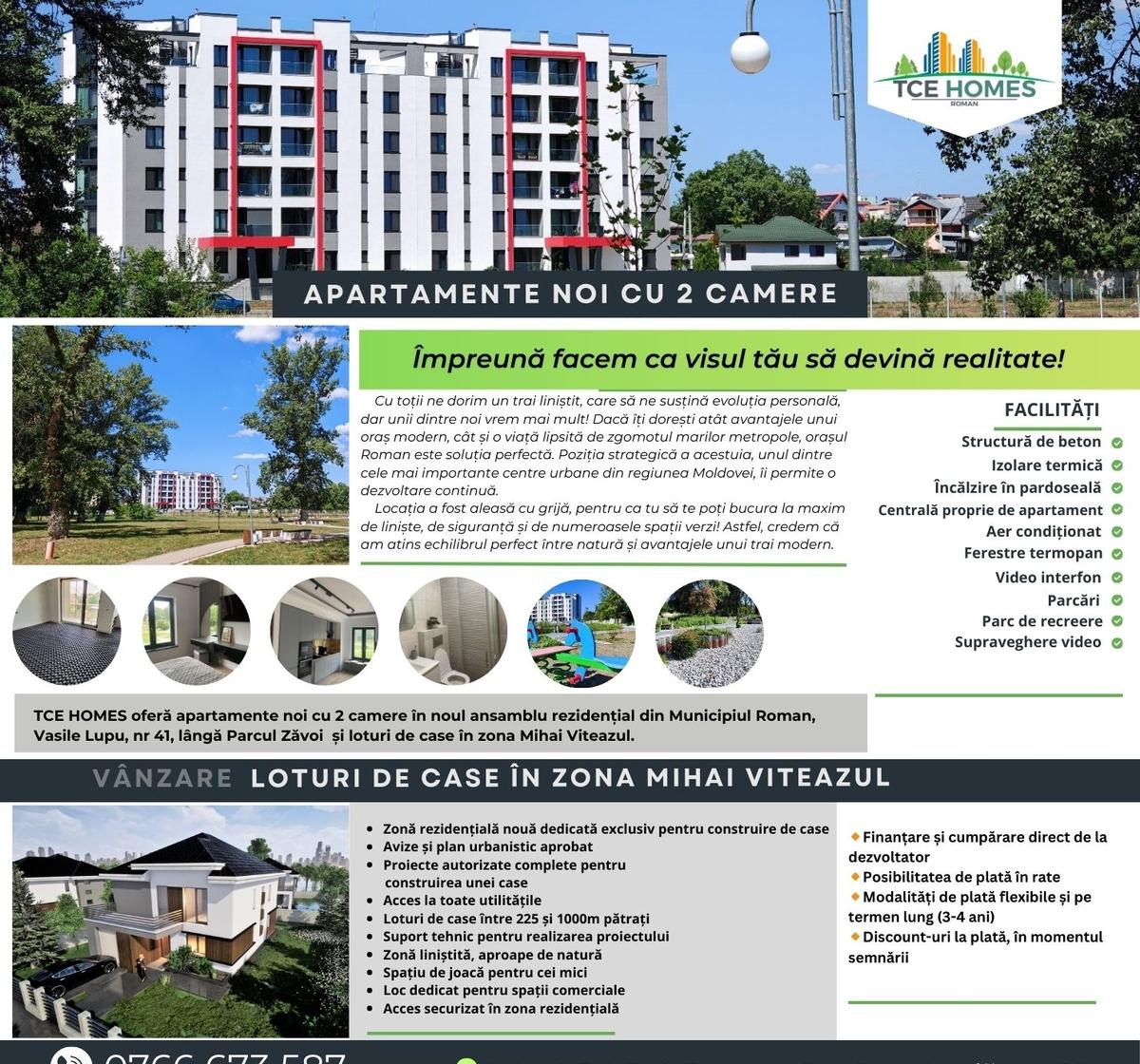 apartamente noi cu 2 camere moderne si spatioase in noul ansamblu rezidential din Municipiul Roman Vasile Lupu nr 41 langa Parcul Zavoi