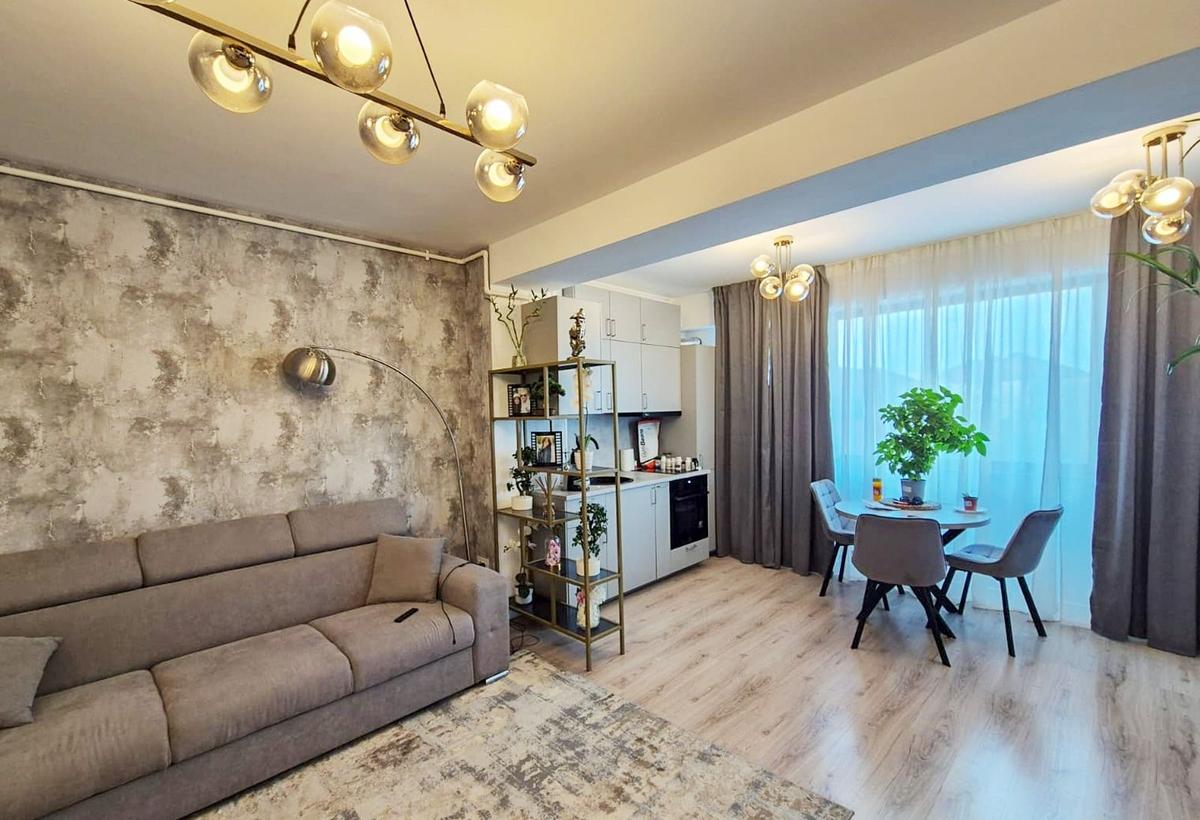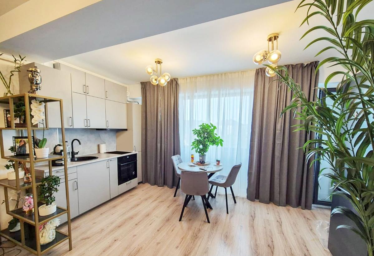 Te invitam sa descoperi apartamentul perfect pentru tine si familia ta Un spatiu cald si primitor unde fiecare detaliu a fost gandit pentru confort siguranta si control smart Detalii apartament 2 camere semidecomandat situat la mezanin P Mez 8E Living cu bucatarie open-space zona de dining si spatiu de relaxare canapea extensibila TV birou Dormitor matrimonial cu dressing spatios si patut pentru copii Baie complet echipata cu cada si dulap de depozitare Hol mobilat cu spatiu generos de depozitare Facilitati de top Sistem Smart Home VIKI controleaza luminile temperatura si umbrirea direct de pe telefon tableta sau comenda vocala Centrala termica proprie Electrocasnice complete frigider aragaz cuptor cu microunde hota masina de spalat vase masina de spalat rufe Boxa de depozitare de 7 mp situata la parterul cladirii - perfecta pentru depozitarea lucrurilor personale biciclete sau alte obiecte de dimensiuni mari Avantaje loca...