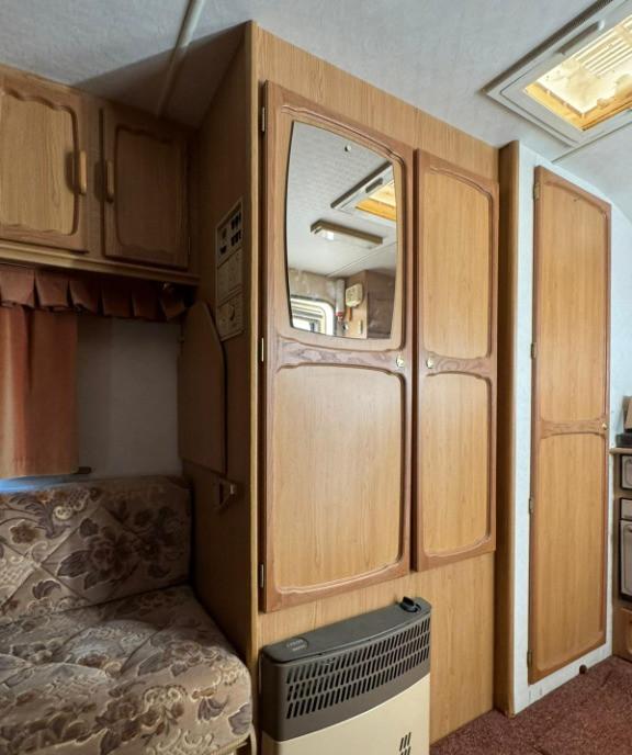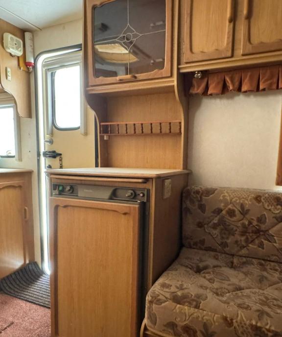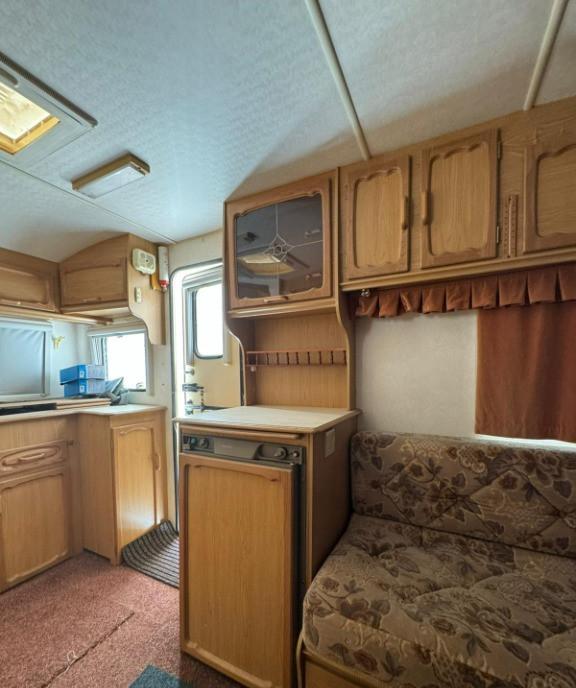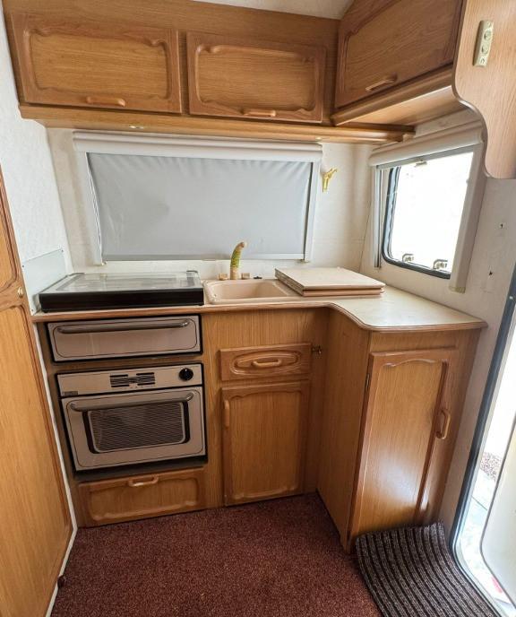 Rulota Swift Sterling Europa 600 fabricatie 2006 inmatriculata ITP valabil 2027 asigurare 2 zone 5 locuri 2 paturi suprapuse posibilitate de a mai monta doua paturi fixe suprapuse Fara mucegai fara mirosuri fara infiltratii fara geamuri sparte sau fisurate Rulota este in stare foarte buna Inmatriculata 1363 kg masa proprie si 1595kg masa maxima autorizata lungime 690cm 100cm protap latime 220cm Punte dubla kit saboti noi la toate rotile 2 anvelope 2023 una 2013 una 2014 rezerva sub rulota Boiler apa calda pe 220v 850w si gaz pompa de apa exterioara Bidon apa curata Aquaroll 40l In fata canapele in forma de U care se transforma in pat de 3 persoane 190x210cm Living cu canapele si masa care se poate transforma in dormitor cu 2 paturi suprapuse 60x180cm Baia mare separata in spatele rulotei cu chiuveta apa calda/rece toaleta ecologica Thetford cu caseta de golire exterioara cabina de dus separat din plastic sifonier si spatiu generos de depozitare La bucatarie...