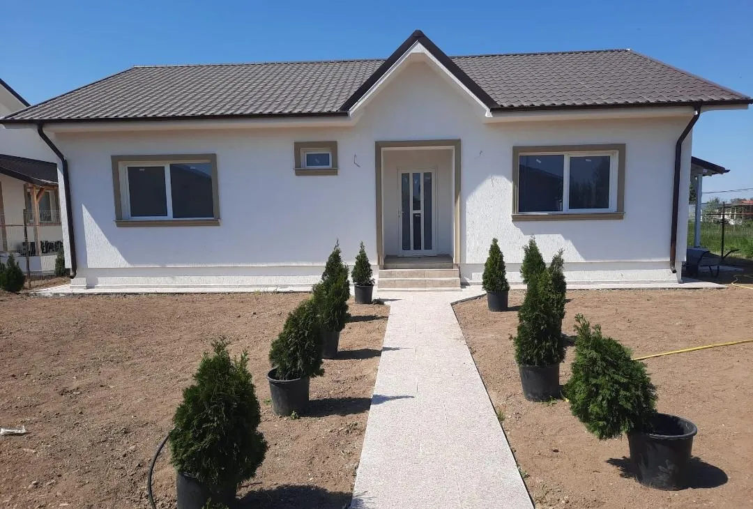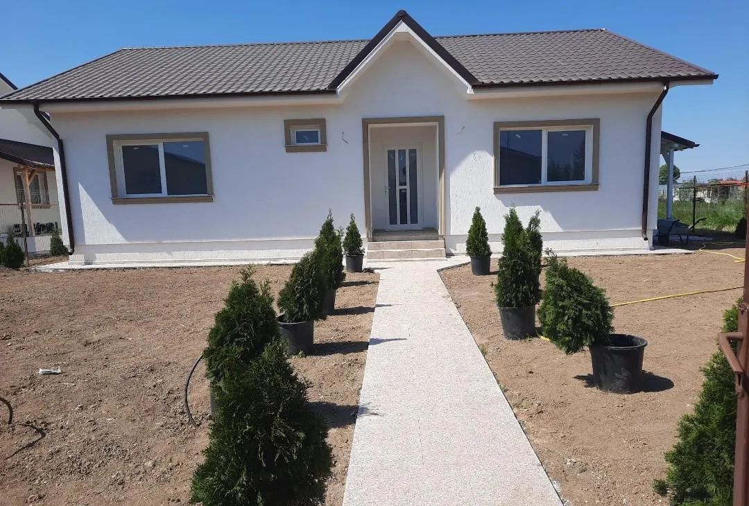 Fara comisioane, in Sabareni la 7 minute de centrul comunei (Profi, scoala, gradinita, restaurant, farmacie, teren de fotbal, primarie, cabinet veterinar, diverse marketuri, mijloace de transport, etc.), am placerea sa va prezint in complex securizat de case noi, o casa cu 4 camere si 2 bai regim parter + pod mansardabil cu placa de beton izolata la interior, la exterior este izolata cu polistiren de 10cm, terasa amenajata cu beci destul de generos, se preda gata finisata la chei cu finisajele la alegerea clientilor (gresie, faianta, parchet, obiecte sanitare, usi de interior), centrala pe gaze, tamplarie termopan, curtea se preda amenajata cu alei betonata si pavate cu pavele sau granit, gazon montat cu sistem de aspersoare, pomi, curte imprejmuita cu gard, porti de acces pietonal si auto, platforma betonata de parcat masina, se preda bransata la gaze, curent, put cu hidrofor si fosa, se accepta si credit, chiar merita vazuta! Pentru detalii suplimentare si vizionare ne putem auzii la telefon in fiecare zi, de luni pina duminica intre orele 09 -21.30