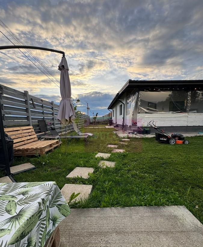 Casa este situata in localitatea Sabareni la 11 km de Centura Capitalei intr-o zona rezidentiala noua in vecinatatea padurii Are structura de rezistenta din beton armat si zidarie din caramida este construita in anul 2020 are 3 camere 2 bai bucatarie hol camera tehnica si terasa acoperita Este izolata termic si finisata complet gresie faianta parchet termopan obiecte sanitare centrala pe gaze calorifere Casa este mobilata mai putin un dormitor inclusiv bucataria utilata Curtea este amenajata iar zona ferita de traficul rutier Este intabulata si poate fi disponibila in 30 zile Pret 136 000 EUR negociabil Nu se plateste comision si TVA