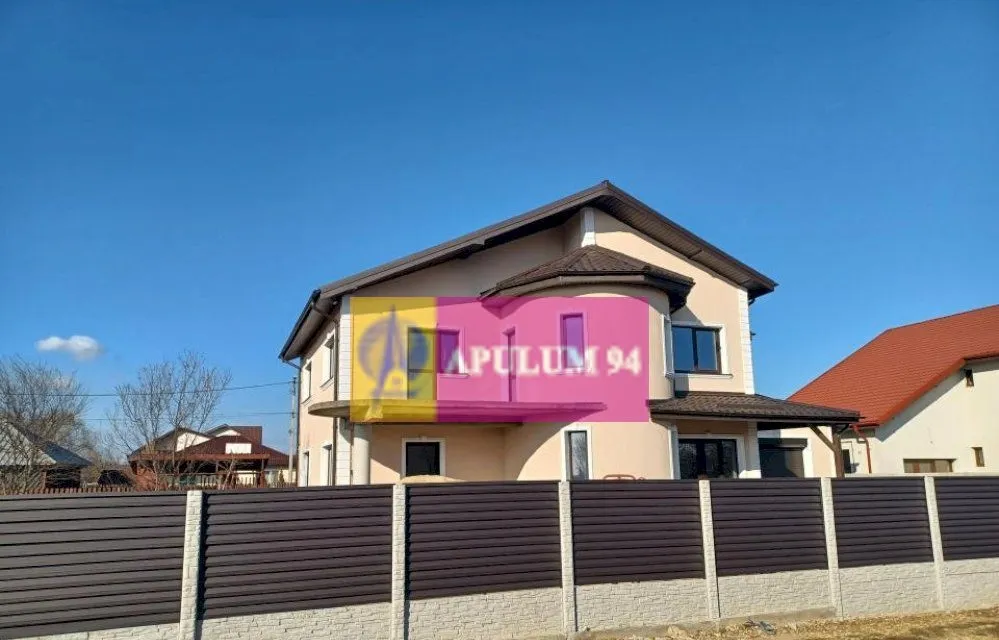 Imobilul, cu regim de inaltime P+1E+pod, are structura de rezistenta din beton armat si zidaria din caramida si este alcatuit din Living 36 mp, bucatarie 11 mp, 4 dormitoare: de 26 mp, de 18, de 17 si de 14 mp, 3 bai (doua de 9 mp si una de 5,65 mp), dresinguri, holuri, casa scarii, camera tehnica, garaj 25 mp, terasa 38 mp si balcon. Camere mari, luminoase, ferestre Salamander cu geamuri tripan. Toti peretii exteriori sunt izolati cu polistiren de 15 cm, cu EPS 80. Casa este acoperita cu tigla metalica mata de 0,5 grosime, cu parazapezi. Finisajele interioare vor fi de calitate si pot fi alese de cumparator, intr-un buget convenit de comun acord. Incalzire in pardoseala in toata casa, cu centrala termica pe gaze in condensatie. Termen de finalizare 3 luni. Pret, la cheie 210.000 EUR. Nu se plateste comision sau TVA