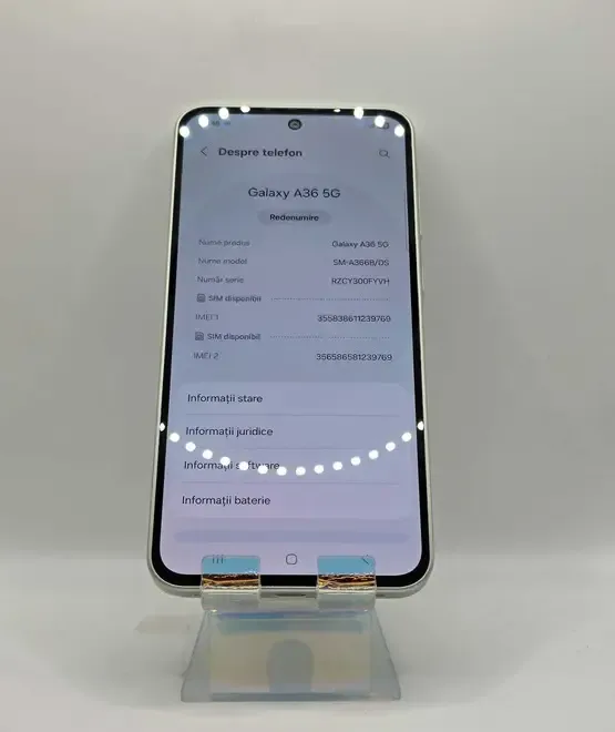 Samsung A36 MEM 128GB RAM 6GB Awesome Lime Amanet Doamna Ghica Cod 85072<br /> <br /> Aspect 9 9/10<br /> Culoare Awesome Lime<br /> Dimensiune ecran 6 7 inch<br /> Tip display Super AMOLED<br /> Rezolutie pixeli 1080 x 2340<br /> Memorie interna 128 GB<br /> Memorie RAM 6 GB<br /> Rezolutie camera principala <br /> 12 MP Ultrawide<br /> 8 MP Ultrawide<br /> 5 MP Macro<br /> 50 MP Wide<br /> Rezolutie camera frontala 12 Mpx<br /> Rezolutie video HD Full HD 4K<br /> Capacitate baterie 5000 mAh<br /> Cod Produs 85072<br /> <br /> Program de lucru Agentie Non-Stop<br /> Nu facem schimburi <br /> Nu trimitem prin curier<br /> Ne puteti gasi la adresa <br /> Doamna Ghica nr 6 bl 3 langa Superbet sector 2 Bucuresti Program Non-Stop<br /> Oferim bon fiscal pentru orice produs achitat