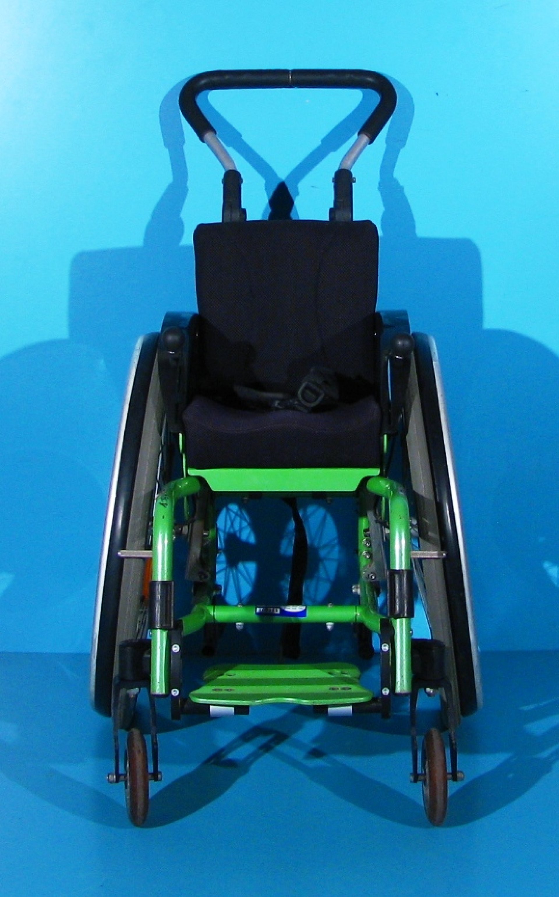 Carucior handicap second hand nepliabil cu detasare rapida a rotilor, destinat deplasarii persoanelor cu handicap locomotor, si cu mobilitate scazuta.