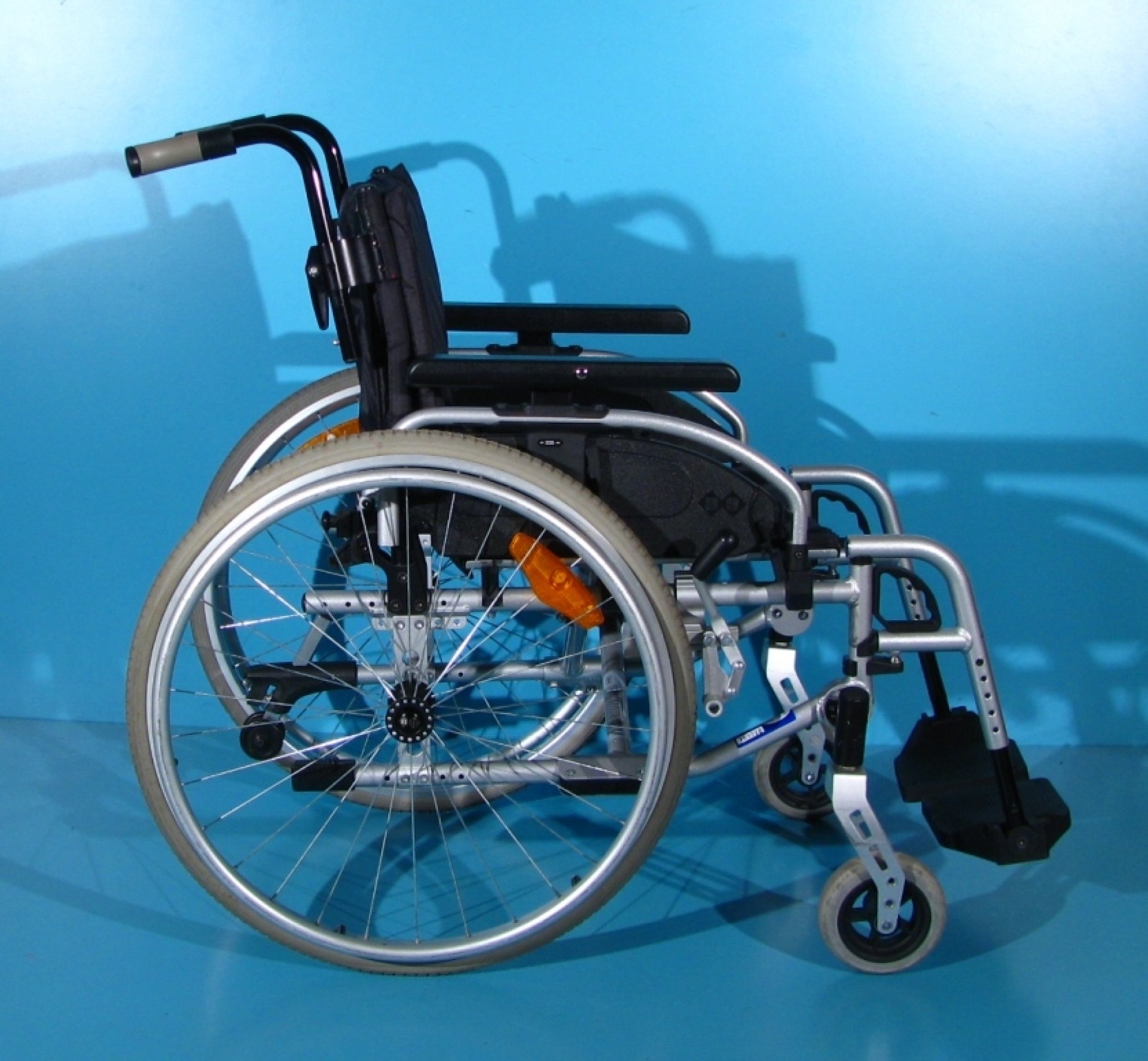 Scaunul rulant are schelet din aluminiu, vopsit epoxy.