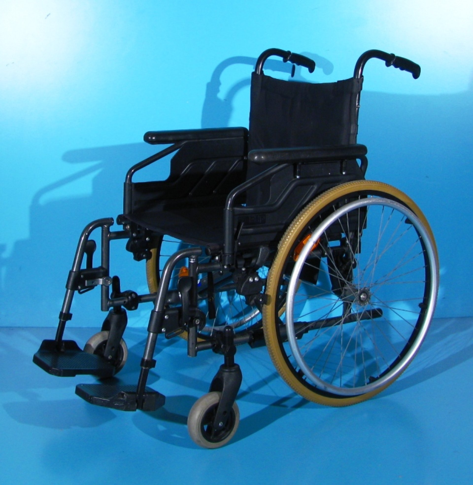 Scaunul rulant are schelet din aluminiu, vopsit epoxy.