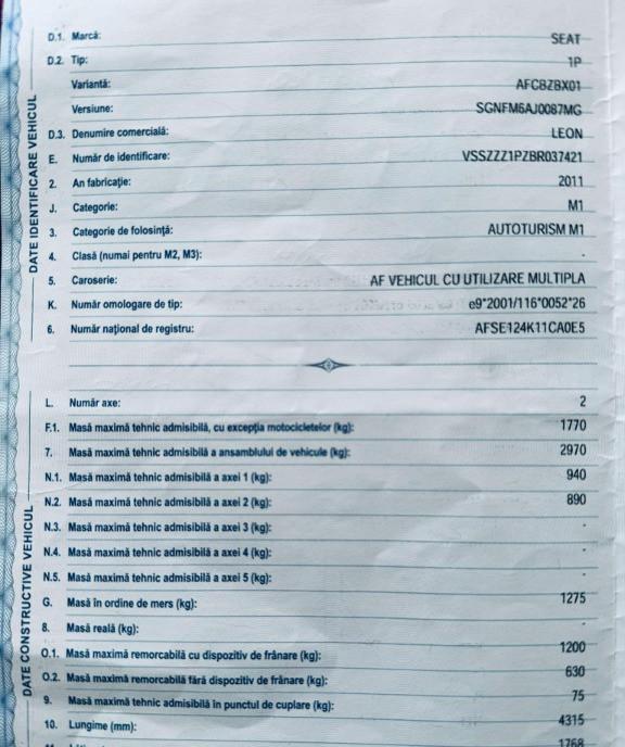 De vanzare Seat Leon fabricat la sfarsitul anului 2012 trecut in 2013 dupa VIN 163 000 km in crestere Masina cumparata personal din Germania de la singurul proprietar TUV valabil pana in noiembrie 2025 Ideala pentru naveta consum intre 4 8 si 6 1 in functie de mers Carte service pentru perioada in care a fost in leasing restul reviziilor nu sunt trecute in carte Benzina euro 5 motor 1 2 litrii benzina cu turbo 105 cp 6 trepte cu pilot automat Interior impecabil exterior impecabil cu exceptia urmelor de grindina de pe plafon si capota
