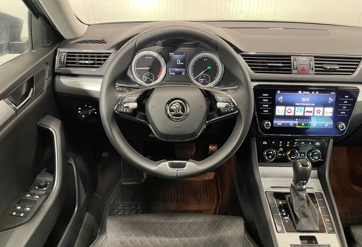 Specificatii: CIV Romania Istoric de service Transmisie automata DSG Drive mode: ECO, Comfort, Normal, Sport, Individual, E-Mode Faruri LED Sistem de navigatie, inclusiv harta Romaniei Scaune incalzite Scaun sofer cu reglaj electric si memorii Cruise Control (Pilot automat) Traffic sign (Recunoastere semne rutiere) Front assist (Sistem franare urgenta) Driver alert (Recunoastere oboseala sofer) Camera video marsarier Park Pilot - Senzori parcare fata-spate cu afisaj Incarcare telefon prin inductie (Wireless) Conectare telefon prin Bluetooth - Android Auto si Apple CarPlay Display multimedia cu touchscreen si control prin gesturi Senzori de ploaie si lumini Jante aliaj 19" Iluminare ambientala LED Lumini de zi si stopuri LED Climatronic 2 zone Keyless GO Volan imbracat in piele, multifunctional Frana de parcare electrica + Auto Hold ABS/ESP Sistem START&STOP Controlul presiunii pneurilor Geamuri electrice fata-spate Geamuri fumurii Oglinzi reglabile electric, rabatabile si incalzite Co...