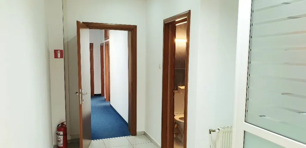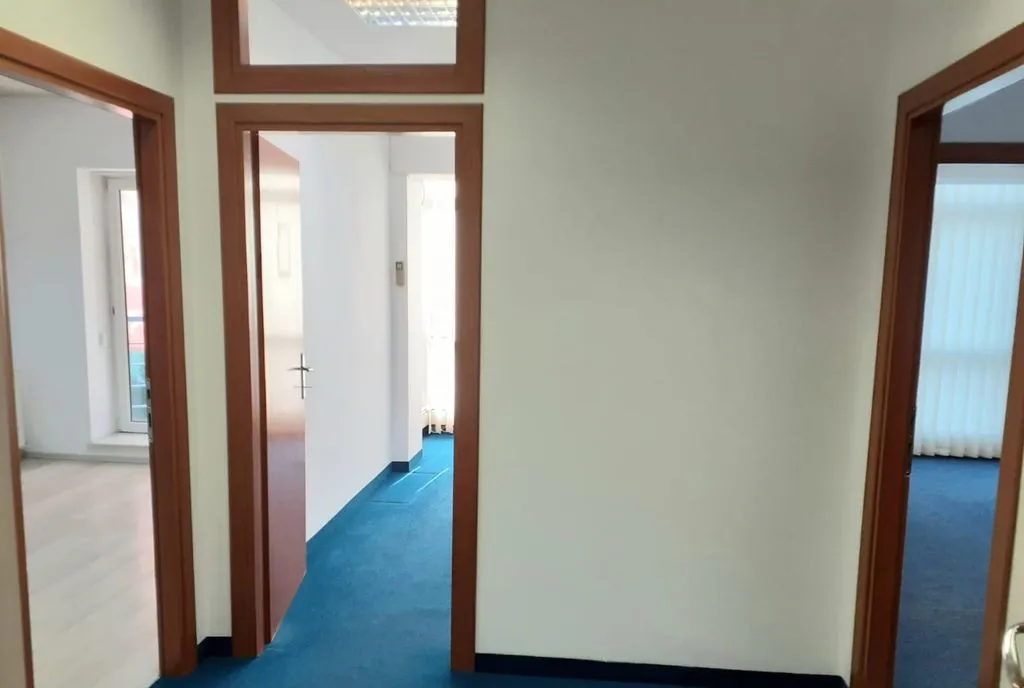 Pot fi inchiriati intre 114-242mp, compartimentati cu 8 birouri, kitchineta, 2 bai si sala de luat masa, precum si 30mp de garaj care poate fi folosit si ca loc de depozitare. Poate fi inchiriat tot etajul in folosinta exclusiva sau la 2 chiriasi, respectiv 114mp si 128mp util brut, zonele de kitchineta, bai si luat masa fiind folosinta comuna.