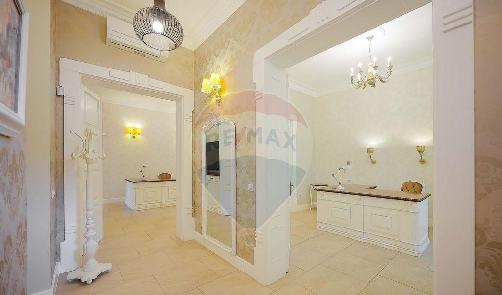 Spatiul este situat ultracentral pe Strada Teatrului nr 6 intr-o curte interioara retrasa care ofera acces facil dar fara expunere directa la trafic si zgomot Aceasta pozitionare il face potrivit pentru activitati profesionale care presupun intalniri recurente cu clienti si necesita un cadru linistit juridic consultanta psihoterapie servicii private sau activitati similare Proprietatea a fost renovata complet in 2023 si este functionala integral Are o suprafata utila de 78 45 mp este amplasata la parter si este compartimentata in doua birouri bine proportionate doua bai bucatarie si hol de acces In completare exista o terasa privata de 12 55 mp precum si doua boxe la subsol Spatiul se vinde in forma actuala conform imaginilor fara a fi necesare lucrari suplimentare sau investitii ulterioare Compartimentarea este clara si eficienta permitand desfasurarea activitatii fara interferente intre zonele de lucru si cele de intalnire Finisajele si dotarile au fost...