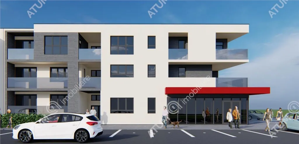 Spatiu comercial de vanzare in localitatea Selimbar judet Sibiu, acesta se afla la parterul unui bloc de locuinte de P 2 si are deschidere stradala.