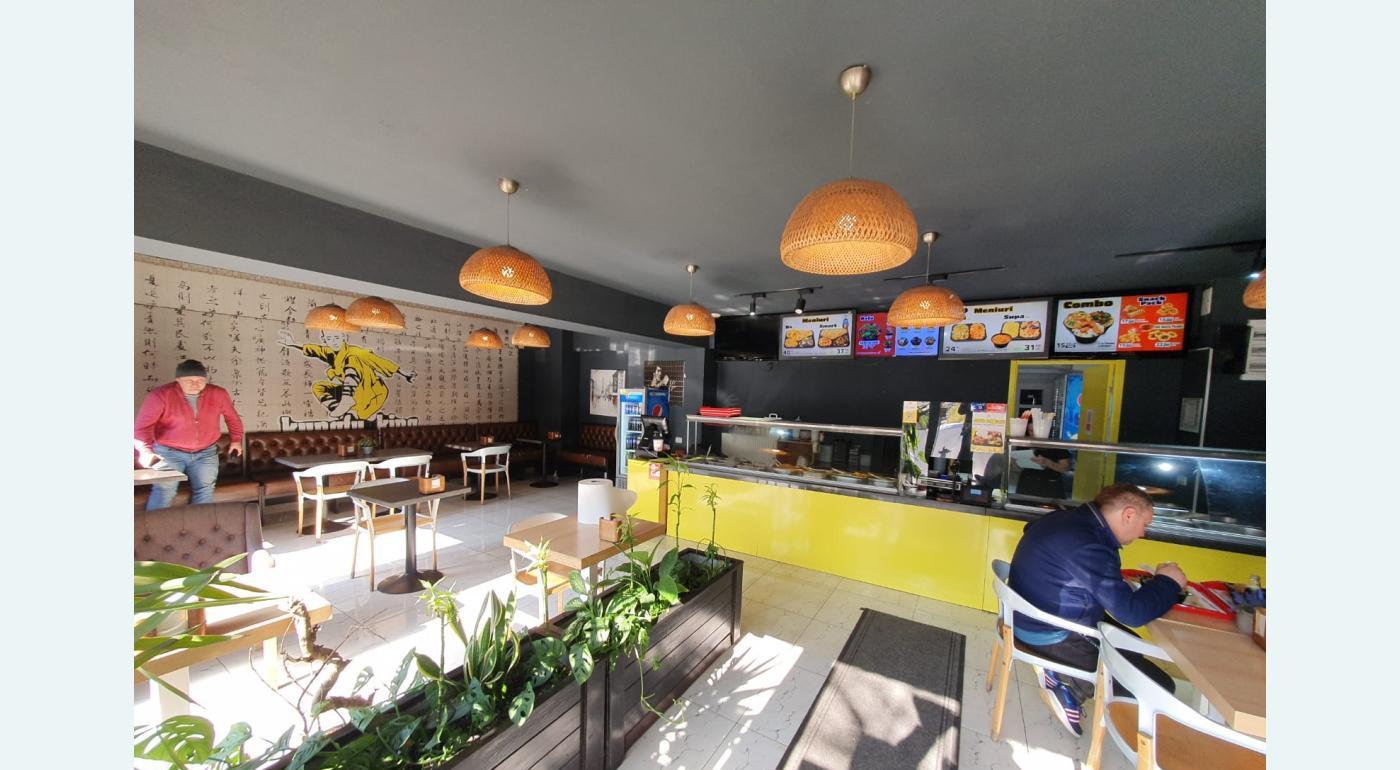 - 2 bai zona bucatarie zona debara zona vanzare si servire tavanele sunt casetate sistem de ventilatie si exhaustare sistem anti efractie - racordat la toate utilitatile inclusiv curent trifazic