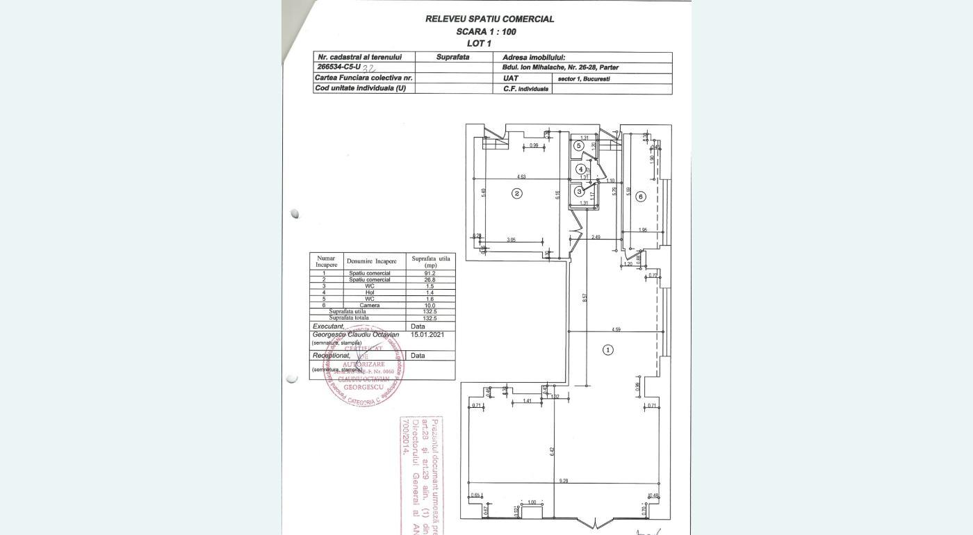 Spatiul propus spre vanzare are 163 mpc si 132 5 mpu interiori Alaturat se afla terenul aferent spatiului comercial de 45mp posibilitate parcare 4 masini