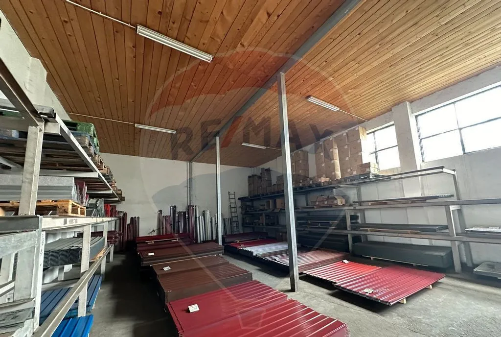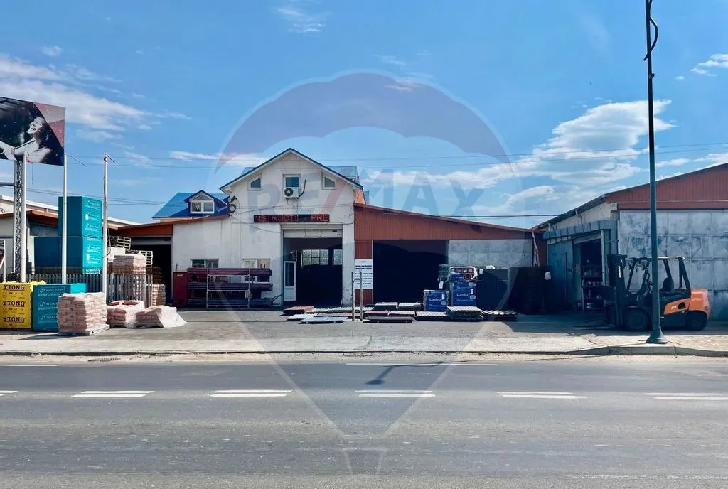 Imobilul dispune de 1086 mp teren cu 950 mp construiti, deschidere de 36 de m la strada, constructiile sunt pe structura metalica si zidarie de caramida si sunt compuse din Birouri plus Hale productie/depozitare cu diferite suprafete dotate cu placa din beton elicopterizata ,panou curent 380V , gaz ,curte betonata etc.