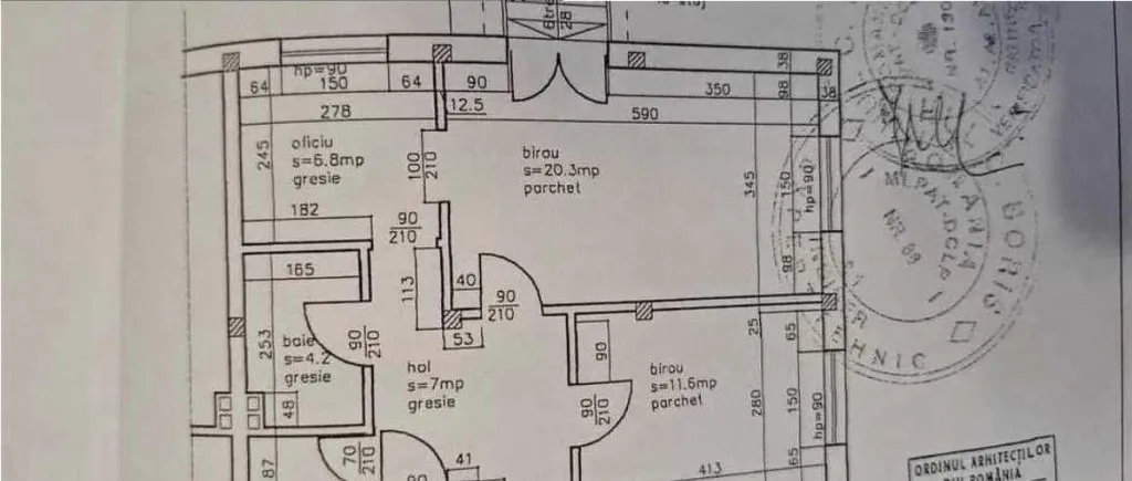 Interiorul este structurat in trei incaperi distincte, care pot functiona independent sau integral beneficiind de doua intari. Holul generos poate fi amenajat ca zona de receptie sau spatiu de asteptare, completat de o bucatarie si un grup sanitar ndash; elemente esentiale pentru activitati ce implica personal si clienti.