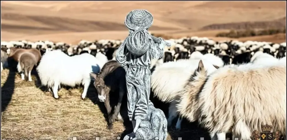 Statueta ciobanas cu catel beton model S73