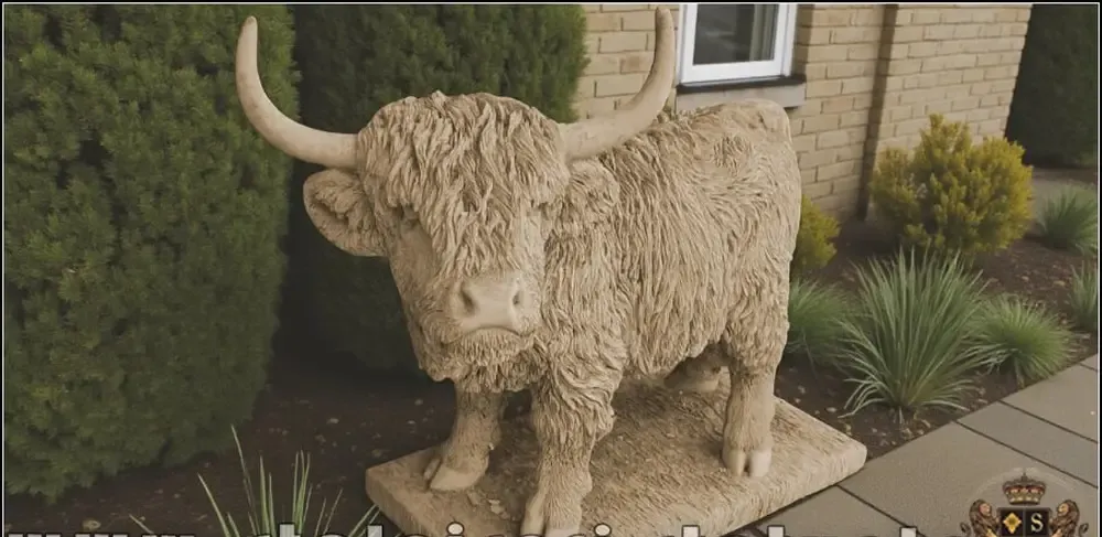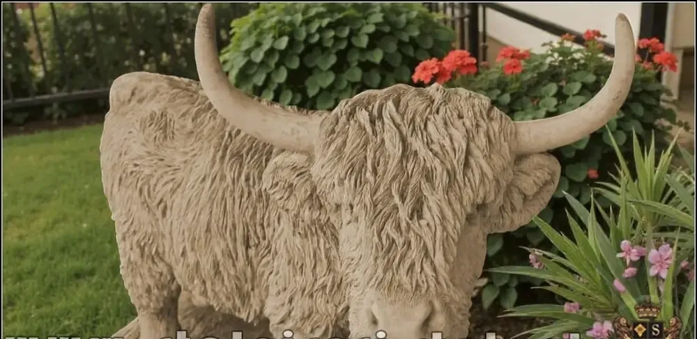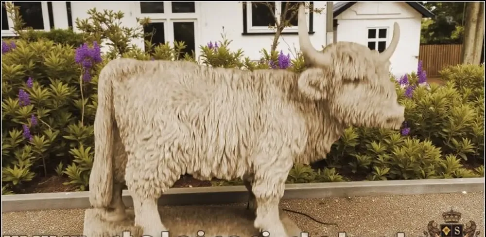 Statueta vacuta Highland galben patinat model S106