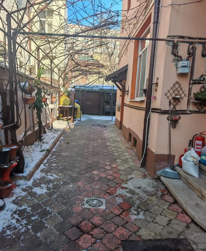 La parter in spatele curtii mai exista o bucatarie de 12 mp, camara 6 mp, camera de 20 mp ,un hol 3mp si baie de 3,4 mp. toate utilitatile functionale + pivnita de cca 12 mp.