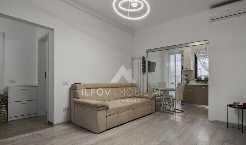 mobilata lux renovata total mobilier nou masina spalat noua aragaz frigider aer conditionat usa metalica parchet gresie faianta termopan proaspat zugravita vedere spate liniste libera