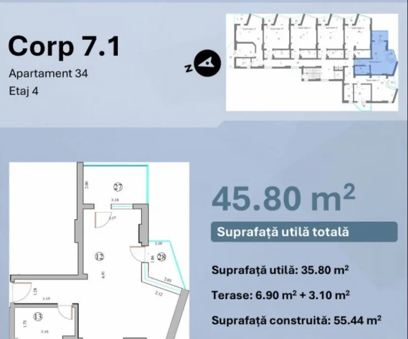 Suprafata totala: 45,8 mp