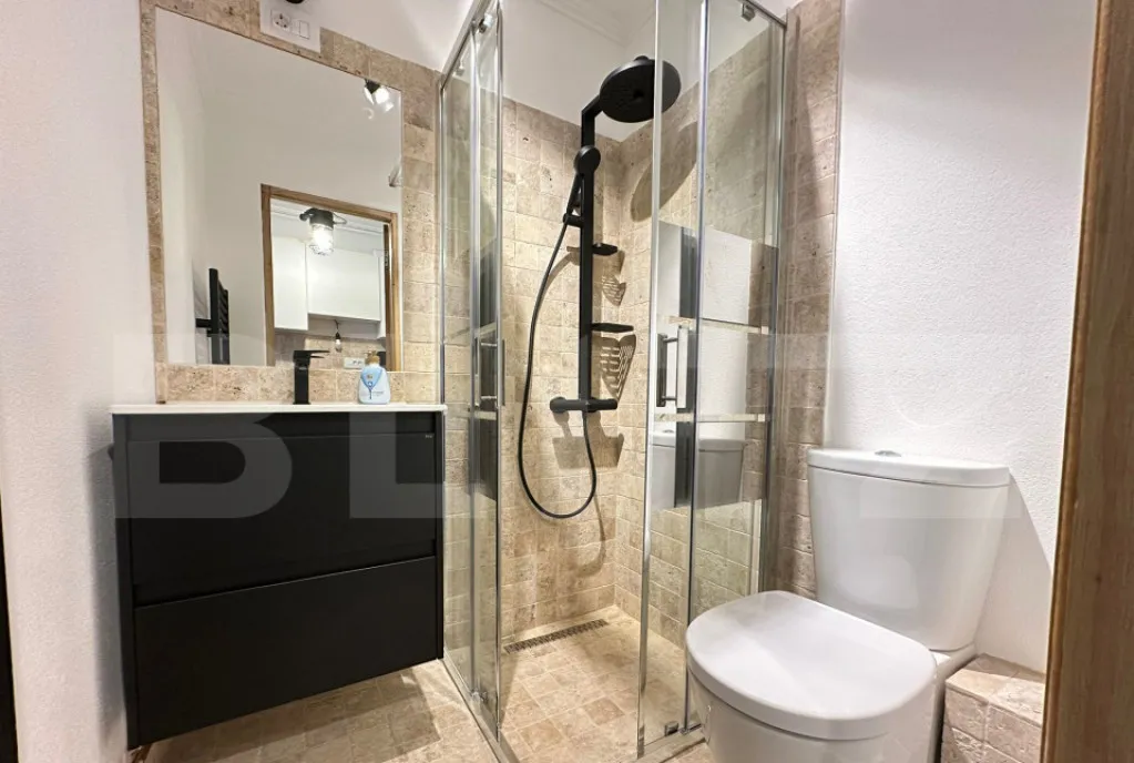 Un spatiu mic, dar facut corect, renovat complet de la zero cu materiale eco-naturale: travertin, parchet din stejar, tinci cu praf de marmura si vopsea pe baza de var. Instalatiile electrice, de gaz, sanitare si de incalzire sunt integral noi.