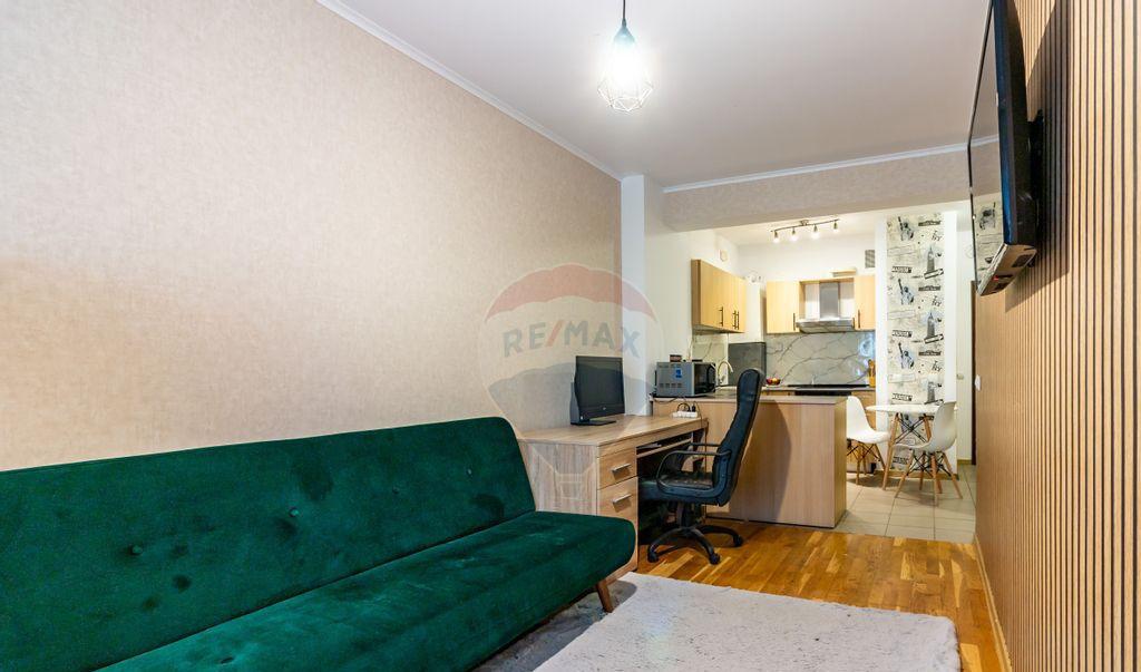 Garsoniera transformata in studio - spatioasa luminoasa si excelent pozitionata Va propunem spre vanzare o garsoniera generoasa cu o suprafata utila de 39 60 mp la care se adauga o terasa de 9 78 mp rezultand o suprafata totala de 49 38 mp Proprietatea a fost compartimentata inteligent si transformata in studio prin adaugarea unui perete astfel incat spatiul sa ofere atat confort cat si functionalitate asa cum se poate observa in fotografii Locuinta se afla intr-un complex rezidential cu o reputatie excelenta apreciat pentru calitatea constructiei comunitatea selecta si pozitionarea privilegiata in oras Accesul este inchis si monitorizat video fiind suplimentat de paza permanenta ceea ce ofera un grad ridicat de siguranta si liniste Unul dintre marile avantaje ale acestei proprietati este proximitatea fata de metroul Dristor la doar 7 minute de mers pe jos In plus zona este foarte bine deservita de mijloace de transport in comun magazine restaurante si alte puncte de interes ceea ce va permite sa ajungeti rapid oriunde in oras Aceasta garsoniera-studio reprezinta o alegere ideala atat pentru locuit cat si pentru investitie datorita localizarii strategice si a facilitatilor oferite