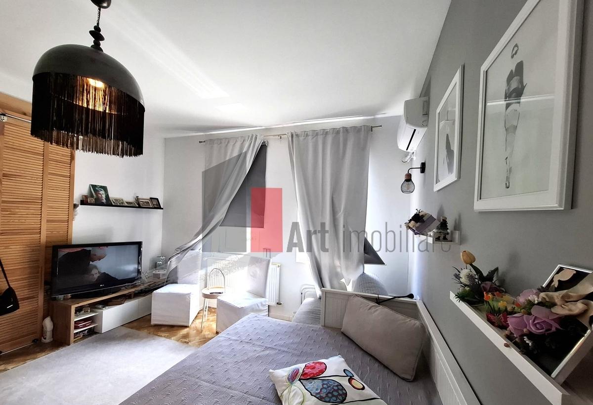 Va propunem spre vanzare un studio modern si extrem de bine compartimentat situat in ansamblul rezidential Atria Urban Resort din zona Chitila finalizat in anul 2021 Studio-ul se afla la etajul 4 dintr-un imobil cu regim de inaltime P 4 si are o suprafata utila de 36 70 mp la care se adauga o terasa generoasa de 10 20 mp rezultand o suprafata totala de 46 90 mp Un mare avantaj al acestui studio este faptul ca poate fi compartimentat inteligent ca un apartament cu doua camere rezultand astfel - un dormitor confortabil - o camera de zi luminoasa - bucatarie inchisa - baie Toate incaperile au acces direct catre terasa spatioasa care devine un spatiu de relaxare perfect fiind dotata cu doua pergole electrice cu senzor de vant ideale pentru a va proteja de soarele verii Vederea este una deosebita catre spatiul interior al complexului unde regasim o zona verde amenajata si o piscina moderna contribuind la un ambient placut si linistit Se vinde comp...