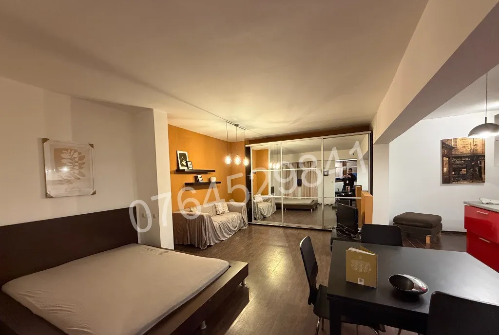 Balcon inclus in camera incalzit cu calorifer,dressing imens pe toata suprafata peretelui,pat,aer conditionat NOU in curs de montaj,televizor led,aragaz,cuptor,hota,combina frigorifica,masina de spalat,camara pe hol(spatiu de depozitare).
