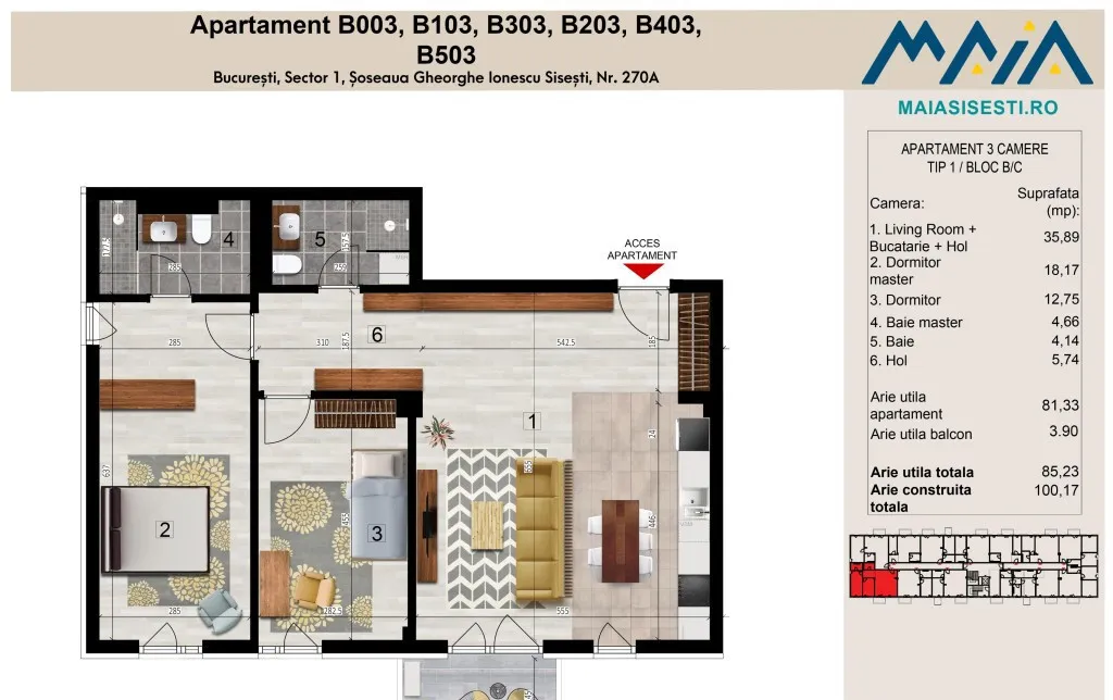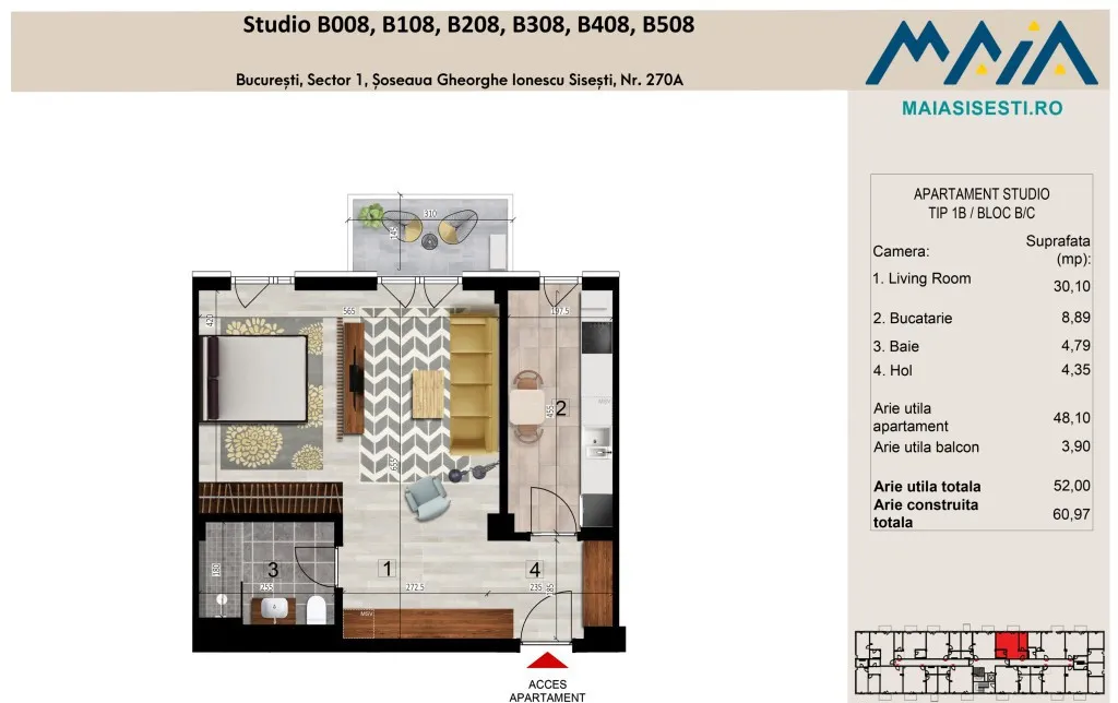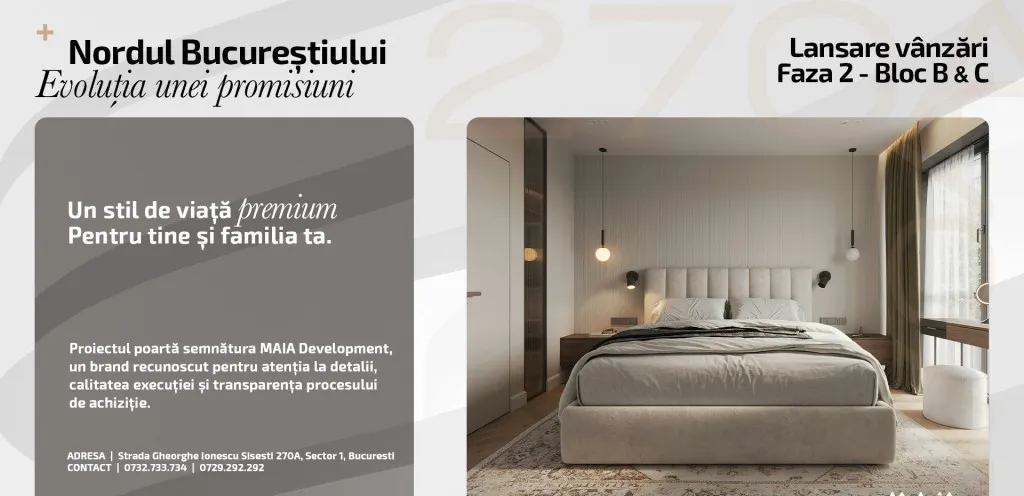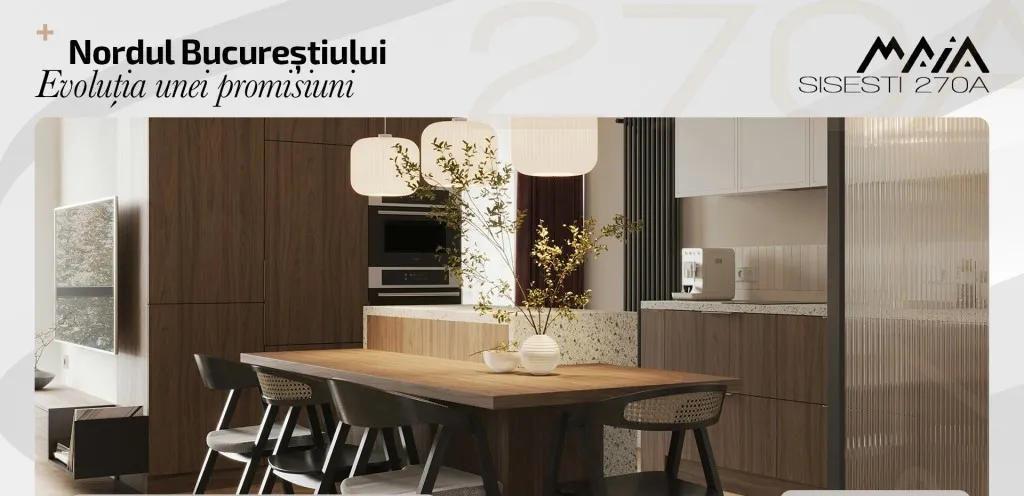Avem plăcerea să vă prezentăm oportunitatea de a achiziționa un apartament în proiectul rezidențial Maia Sisesti, faza a 2-a, situat pe Soseaua Gheorghe Ionescu Sisesti, la doar 350 de metri de Stația de metrou Straulesti.