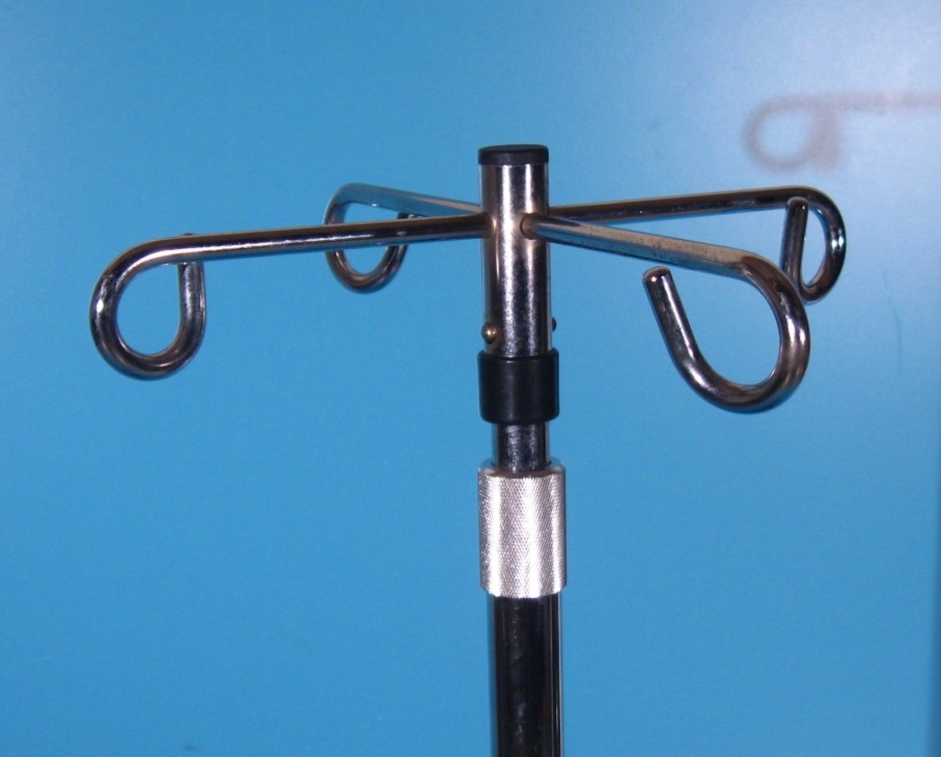 Suportul pentru perfuzie cu picior este din otel cromat.
