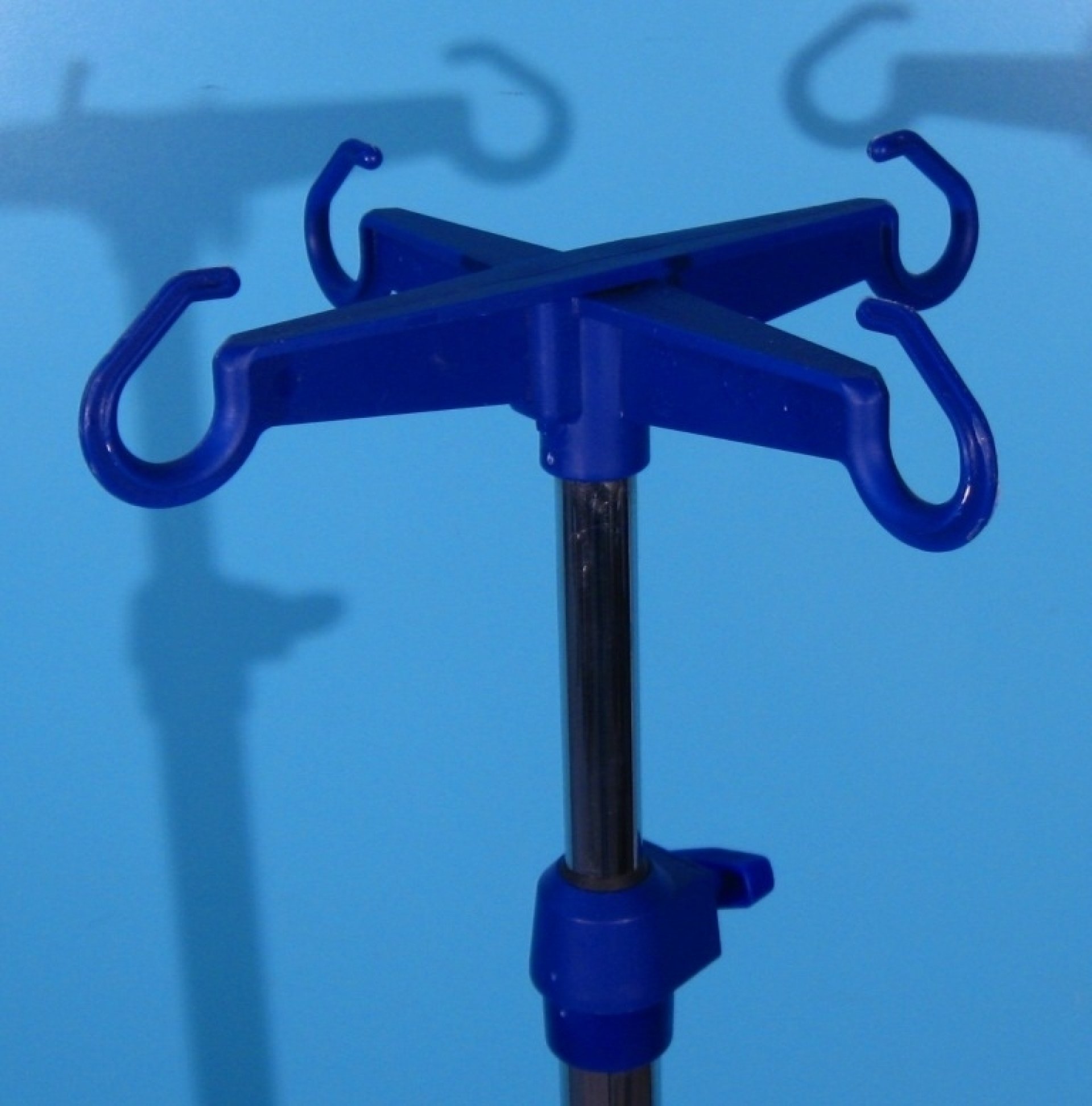 Suportul pentru perfuzie cu picior este din inox.