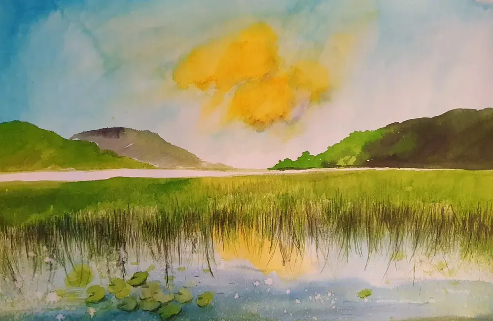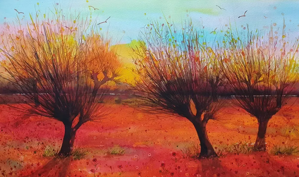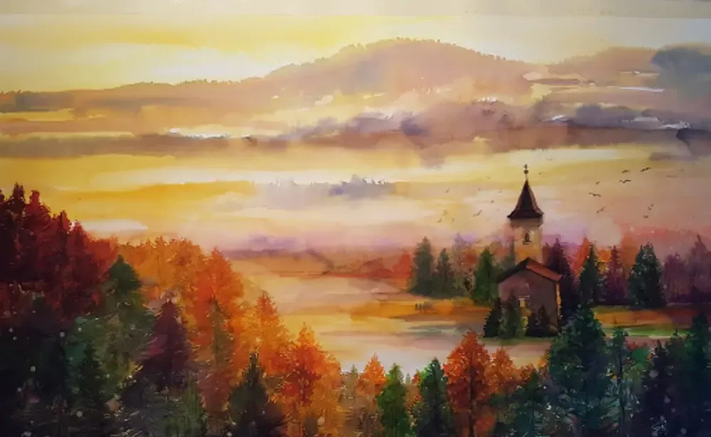Tablourile cu peisaje realizate in acuarela sunt originale si unicate