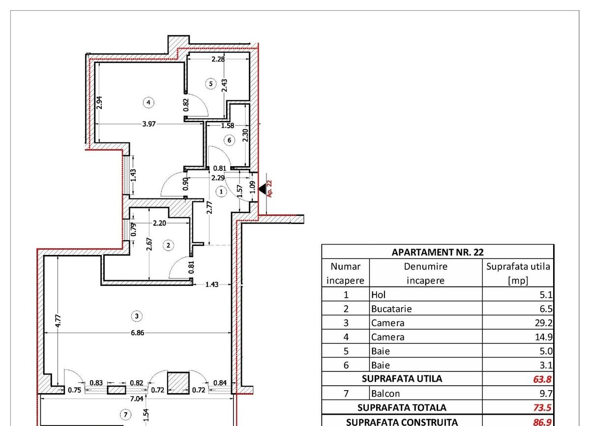 Detalii apartament Suprafata utila 63 8 mp Suprafata totala 73 5 mp inclusiv terasa Terasa 9 7 mp - ideala pentru momente de relaxare in aer liber Etaj 2 Incalzire in pardoseala Centrala termica proprie - autonomie si costuri reduse Bai 2 5 mp si 3 1 mp Compartimentare Hol - 5 1 mp Bucatarie - 6 5 mp Living - 29 2 mp Dormitor - 14 9 mp Baie - 5 mp Baie secundara - 3 1 mp Despre cladire si zona Tepes Voda Residence este un complex rezidential modern construit la standarde inalte de calitate oferind siguranta confort si liniste Zona beneficiaza de acces rapid la mijloace de transport in comun magazine scoli si spatii verzi fiind ideala atat pentru locuire cat si pentru investitie