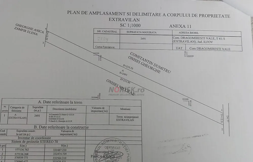 Terenul apartine de Dragomiresti-Vale si are o singura deschidere la drum.