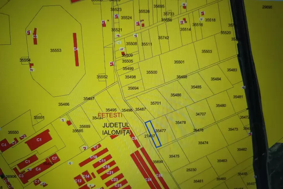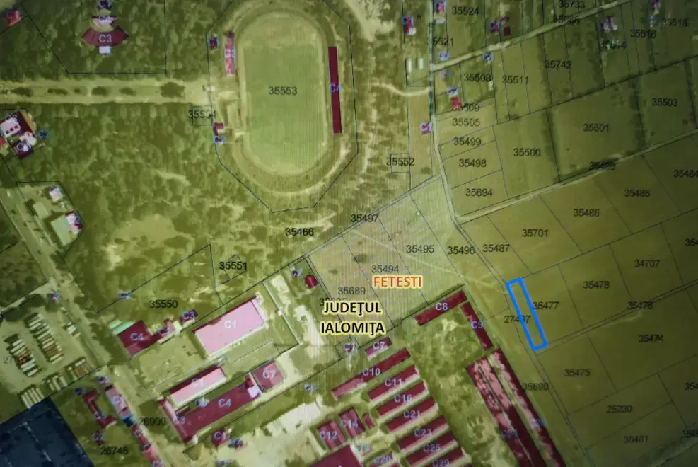 Teren intravilan construibil/arabil cu o suprafata de 1250mp cu posibilitatea racordare la toate utilitatile deschidere la strada pe lungimea 80 m detin carte funciara nomenclator stradal Str Frasinului nr 23 Terenul se afla intr-o zona centrala linistita a orasului Fetesti Parcul Mare Stadion in apropiere de Lidel Autostrada Soarelui scoli spital si de Bratul Borcea