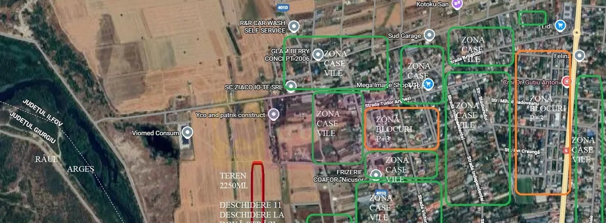 Teren 2250mp aflat la 15 minute de Bucuresti in localitatea 1 Decembrie bun pentru investitie. Terenul se afla la 200ml de strada Artistilor, strada asfaltata si care se bucura de toate utilitatile (apa curent gaz canalizare) si la 1km de intersectia Artistilor cu DN5 (giratoriul unde se afla Supermarketul Lidl) iar la mai putin de 500ml se afla Raul Arges. Terenul se afla intre doua strazi neamenajate - Strada Codrului si Strada Zavoiului si este format din doua loturi alaturate. Deschiderea la drum este de 11ml, deschidere dubla, si la Codrului si la Zavoiului si are o adancime de 200 ml. In prezent terenul se afla langa doua gradini de legume si se poate exploata pentru agricultura sau folosi pentru depozitare sau diferite activitati evident nepoluante deoarece la nici 300ml sunt locuinte. Proprietar persoana fizica. Pentru mai multe detalii si programare de vizionari nu ezitati sa contactati consultantul Apulum94 Daniel Duta.