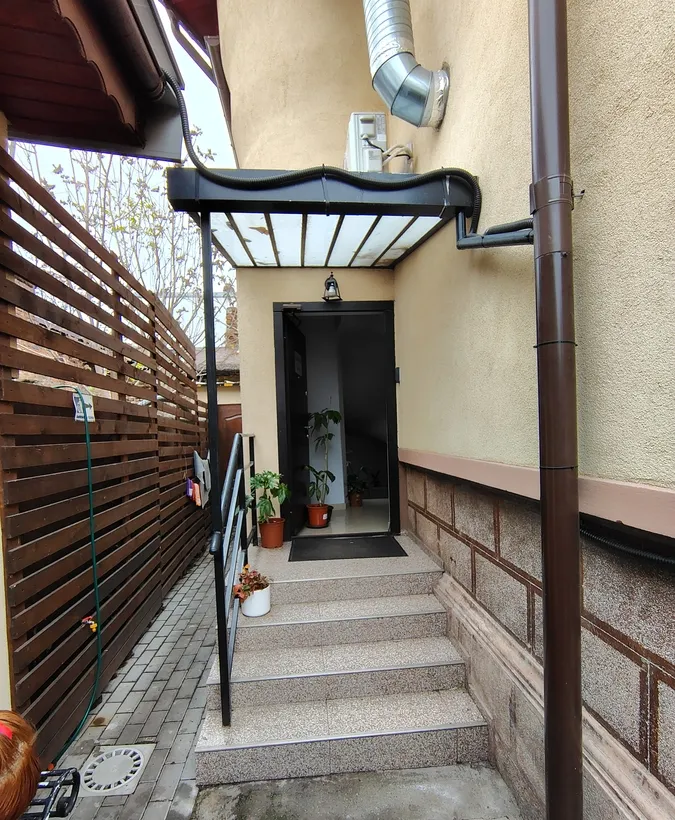 Suprafata totala a terenului este de 243 mp, iar amprenta construita la sol este de 133 mp. In curte mai exista un corp de 22 mp, folosit pentru depozitare si spalatorie.Locatia are instalat un sistem fotovoltaic hibrid de 10kw.