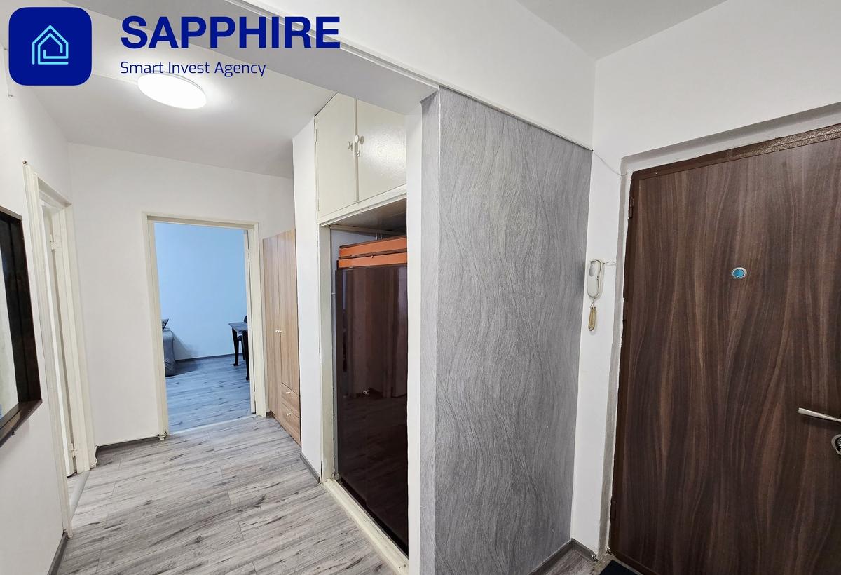Caracteristici apartament Suprafata 52 mp Compartimentare 2 camere decomandate Etaj 5 din 10 An constructie 1977 Imobil foarte curat fara risc seismic dotat cu ascensor interfon si camere de supraveghere video Mobilat si utilat complet masina de spalat rufe combina frigorifica plita hota TV cuptor cu microunde cafetiera aspirator Boiler instalat - ideal ca back-up pentru situatii de avarie Va puteti muta doar cu hainele - totul este pregatit pentru locuire imediata Bloc civilizat cu vecini linistiti