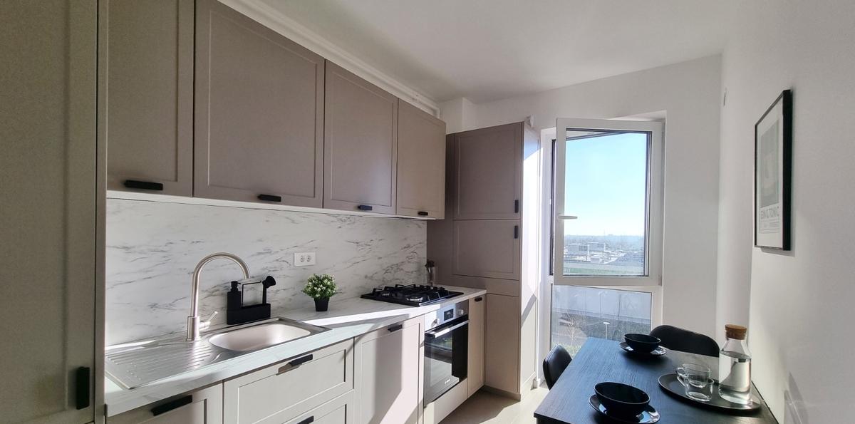 REA1024210 SVN Residentialist Floreasca are placerea de a va propune spre inchiriere un apartament modern de 2 camere complet mobilat si utilat situat intr-o cladire de referinta din nordul capitalei Amenajat la cheie cu ajutorul unui designer de interior apartamentul imbina functionalitatea cu un design contemporan punand accent pe confort lumina naturala si finisaje premium Caracteristici principale Suprafata utila 56 mp Etaj 4 Compartimentare living spatios bucatarie separata prin perete de sticla dormitor matrimonial baie moderna si balcon deschis Smart home sistem de control al incalzirii Danfoss Lumini ambientale si atmosfera moderna Apartament complet functional - gata de mutat imediat Facilitati incluse Loc de parcare subteran inclus in pret Acces securizat receptie si paza 24/7 Spatii verzi si zone de relaxare in proximitate Localizare excelenta Apartamentul beneficiaza de acces rapid catre zona de business din nordul B...