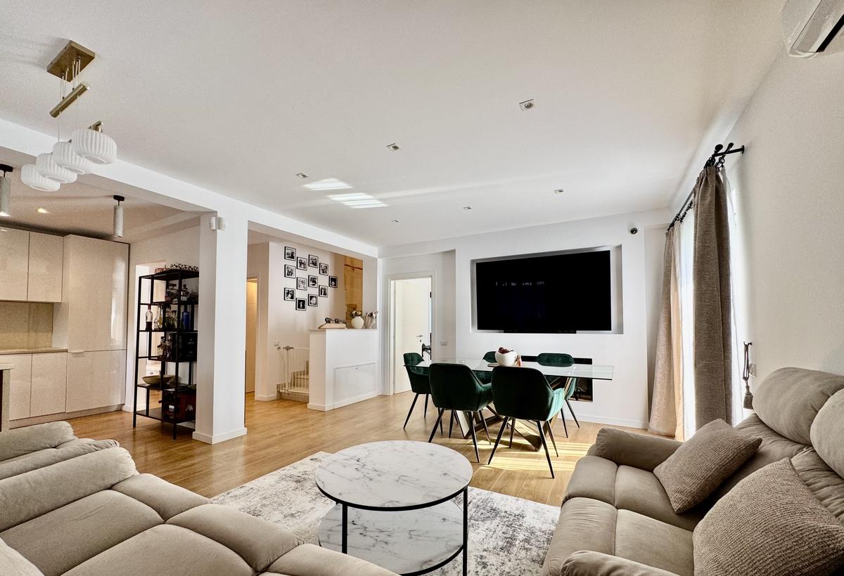 In parcul Tineretului la 50m de accesul in parc va prezentam o casa deosebita parter si mansarda cu suprafata de 200mp 4 camere 2 bai bucatarie spatioasa inchisa cu deschidere vitrata catre terasa Casa a fost construita in 2010 si renovata in 2022 este izolata si beneficiaza de amenajari si dotari eficiente si de calitate Casa se preteaza pentru locuit intr-o zona linistita curata si cu o vecinatate deosebita