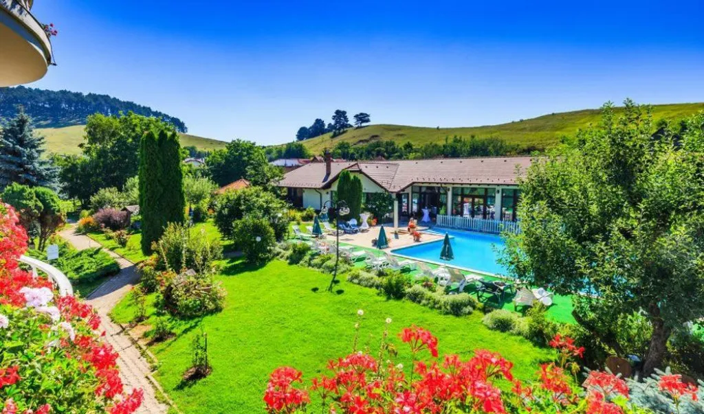 Complexul este asortat cu o gradina superba, amenajata in jurul unei piscine exterioare de 150 mp (10x5), acesta fiind locul preferat si pentru organizarea celebrarilor in aer liber.