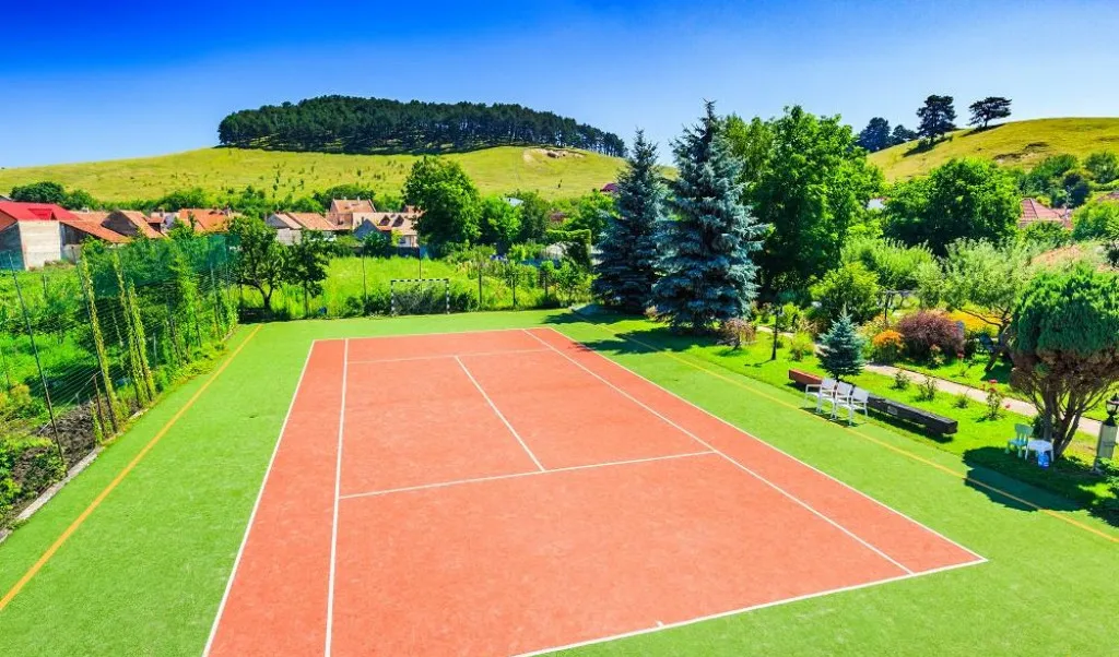 teren de tenis cu gazon artificial, utilizabil si pentru alte sporturi de teren