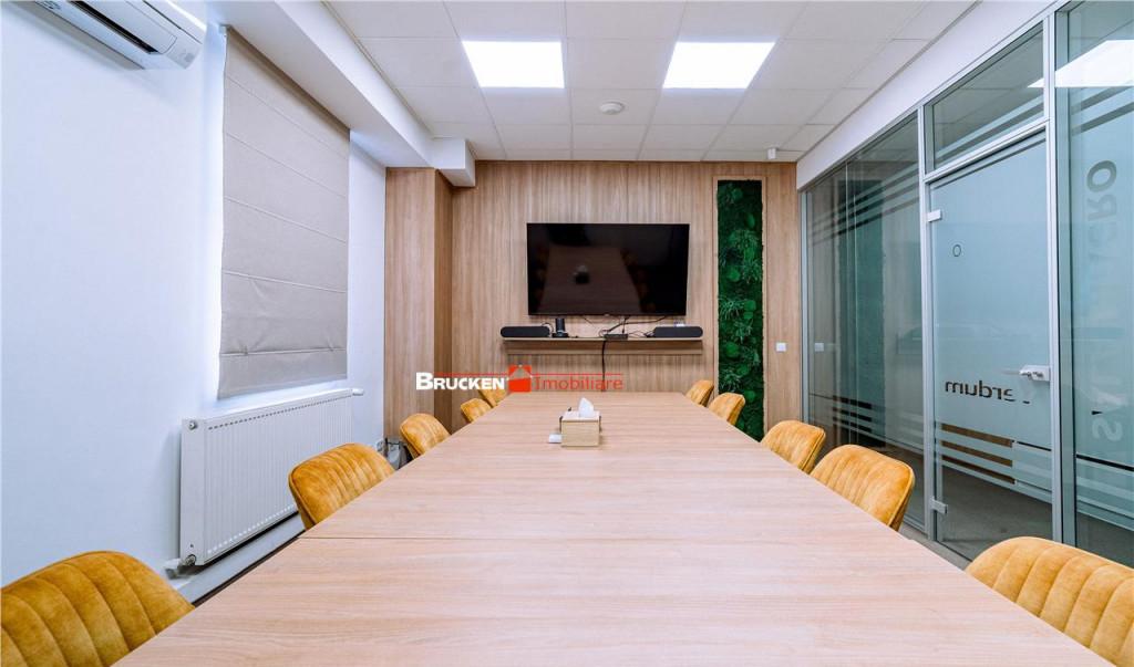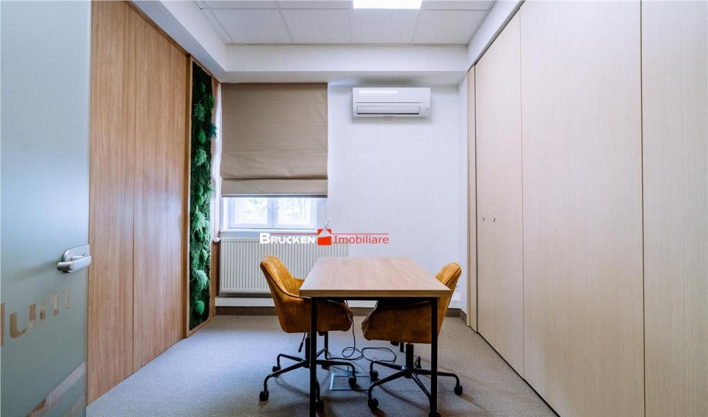 O cladire care chiar merita atentia ta Este o cladire de birouri impresionanta situata ultracentral in Oradea la doi pasi de Primarie Tribunal Parcul 1 Decembrie si Piata Unirii ndash practic in inima orasului Este genul de imobil care atrage priviri solid renovat complet si pregatit sa isi primeasca urmatorul chirias unul care sa ii dea viata si activitate Vorbim despre o cladire cu o suprafata utila de 437 mp dispusa pe parter etaj si mansarda Interiorul este gandit foarte eficient birouri individuale o sala de conferinte spatioasa sala de mese complet echipata grupuri sanitare la fiecare nivel receptie si piesa de rezistenta o terasa cu panorama superba asupra Crisului Repede Are si tot ce tine de confort si siguranta ndash aer conditionat in fiecare birou sistem antiefractie supraveghere video si foarte important o curte proprie cu locuri de parcare pentru 12 masini lucru foarte rar in centrul Oradei Cladirea este extrem de versatila si se potriveste pentru diverse activitati poate functiona perfect ca centru de co-working premium ndash fiecare birou poate fi inchiriat individual iar sala de conferinte poate fi folosita in comun pentru intalniri si prezentari clinica medicala sau de infrumusetare unitate privata de invatamant sau orice alt domeniu care are nevoie de un spatiu reprezentativ si usor accesibil Cele 12 locuri de parcare din curte pot fi negociate separat sau integrate in pachetul contractual in functie de nevoile chiriasului