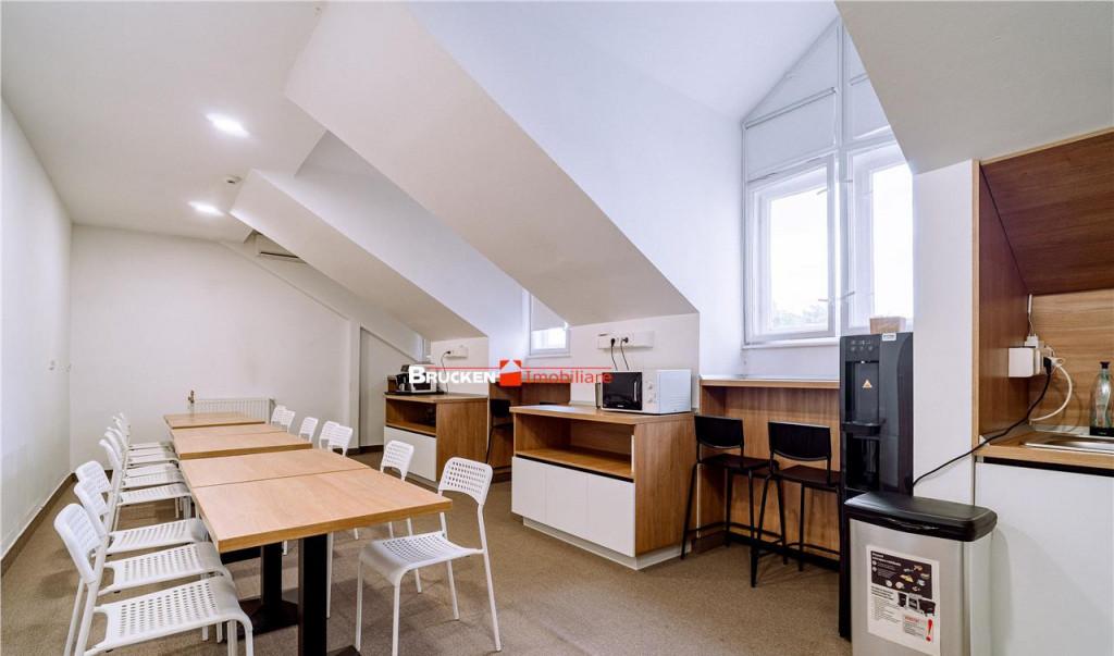 ID Anunt P102666 Taxa de serviciu perceputa de KING Imobiliare este de 50 TVA din prima luna de chirie Inchiriere spatiu de birouri 70 mp utili terasa si loc de parcare Zona Herastrau Va propunem spre inchiriere un spatiu de birouri modern situat in zona premium Herastrau cu o suprafata de 70 mp utili terasa privata si loc de parcare inclus Spatiul ofera un cadru ideal pentru activitati de birou consultanta servicii sau start-up-uri cu posibilitatea de adaptare la cerintele chiriasului Configurat initial pentru activitati comerciale spatiul poate fi preluat atat in varianta existenta cat si renovat si personalizat in functie de nevoi Compartimentare 2 camere spatioase ideale pentru birouri open space sau individuale Bucatarie complet functionala perfecta pentru zona de relaxare a angajatilor 2 grupuri sanitare moderne dus Beneficii suplimentare Terasa privata ideala pentru pauze sau intalniri informal...