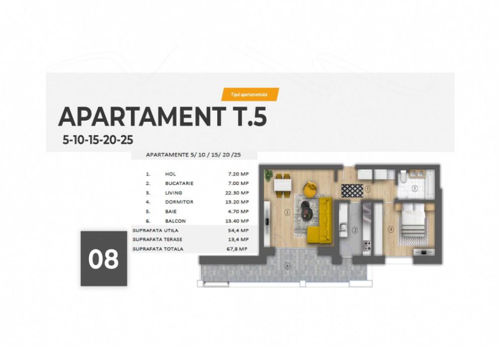 COMISION 0 zero Pentru aceasta proprietate nu se percepe comision din partea cumparatorului La pretul afisat se adauga TVA Apartamentul face parte dintr-un bloc nou construit cu standarde premium situat in Cartierul Evreiesc zona ultracentrala la 8 minute pietonale pana la Piata Unirii si metrou Apartamentul Tip 5 de 2 camere este situat la etajul 3 din 7 avand suprafata totala de 67 8 mp incluzand terasa de 13 4 mp Loc parcare subteran 35 000 euro TVA Detalii generale - Constructie inceputa in februarie 2024 cu finalizare in septembrie 2025 - Regim de inaltime S P 7E - Unitati locative 32 - Unitati locative pe etaj 5 - Tipuri de locuinte Apartamente cu 2 si 3 camere 2 penthouse-uri exclusiviste - Parcare subterana 18 locuri Structura si compartimentare - Cladire realizata pe structura de beton armat conform standardelor actuale de siguranta - Peretii exteriori sunt construiti din caramida Porotherm Profi de 30 cm termoizolatie cu vata minerala bazaltica de 10 cm - Fatada este ventilata si placata cu materiale durabile si moderne fibrociment Equitone Belgia si HPL Fundermax Germania - Pereti dintre apartamente caramida Porotherm de 25 cm pentru izolare fonica buna - Pereti interiori gips-carton dublu placat cu izolatie fonica Isover montat in sistem complet Knauf Pardoseli si finisaje - Bai bucatarii si terase placate cu gresie portelanata import Italia - Terasele vor avea pardoseala flotanta ceramica antiderapanta de exterior - Parchet triplu stratificat potrivit pentru incalzire in pardoseala - Peretii vor fi finisati cu vopsea lavabila alba aplicata in doua straturi Tamplarie si usi - Usa de intrare metalica cu sistem antiefractie - Usi interioare marca Pinum albe - Tamplarie exterioara din aluminiu cu 6 camere culoare gri antracit - Geamuri termopan performante cu sticla Saint-Gobain Lowe float Planitherm - Balustrade din sticla securizata montate in profil de aluminiu Instalatii electrice si sanitare - Intrerupatoare si prize Legrand Siemens sau similare panou de sigurante automate - Interfon si sonerie in fiecare apartament - Obiecte sanitare Roca sau similare cu vas WC cu rezervor incastrat Tece - Mobilier de baie inclus baterii Hans-Grohe racorduri pentru masini de spalat Incalzire si climatizare - Incalzire in pardoseala Uponor in toate camerele - Calorifere port-prosop in bai - Centrala de bloc Dietrich sau similar pentru incalzire si apa calda - Aer conditionat tip VRF Hyundai cu unitati interioare discrete Ascensor si spatii comune - Lift Schindler personalizat pentru proiect - Casa scarii finisata cu marmura sau granit pereti tencuiti mecanizat si vopsiti alb - Zona exterioara amenajata pentru colectare selectiva a deseurilor - Acces securizat in incinta si zone comune Zona Magazine Unirea Shopping Center Magazinul Cocor Hypermarket Carrefour Unirii Fast food/ Restaurante McDonald s KFC Subway Tratoria Verdi Unirii Boro The Clique Amore Rotondo Pizza Boom Burger Unirii Manasia Hub Zoomsterie Cafenele Centrul vechi altfel Unirii The Clique Moon The Sun Lounge Naked Kitchen and Beach Bar Jo Lounge aici Servicii Farmacii PetShop Barber Shop Saloane de infrumusetare Banci ATM-uri Biblioteca Nationala a Romaniei Spatii verzi Parcul Unirii Scoli si gradinite Complexul Educational Laude-Reut Scoala Gimnaziala Just 4 Kids Scoala Gimnaziala Metropolitana Arc Transport in comun - Tramvai la 4 minute pietonale 4 17 40 55 - Autobuz 4 minute pietonale 104 116 117 123 312 323 385 605 N106 N109 - Metrou 8 minute pietonale M1 M2 M3 Id intern P170365