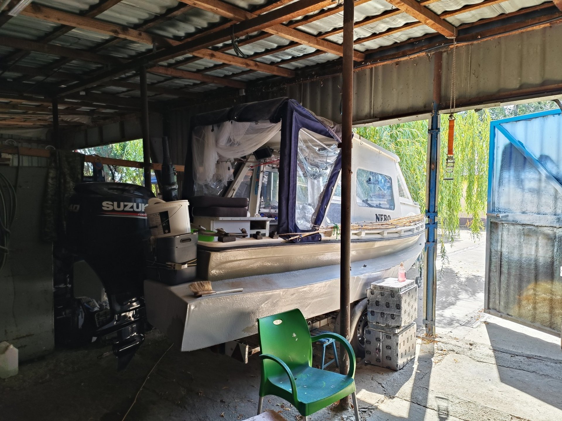 Barca Micro 540 lungime ,lățime 1,7m cu cabina, biminitop ,pat ,saltea,sonar ,trapa ,masa , spatiu pentru depozitare generos ,plasa tantari ,suporti lansete ,ventilator aer, flotoare pentru stabilitate .
